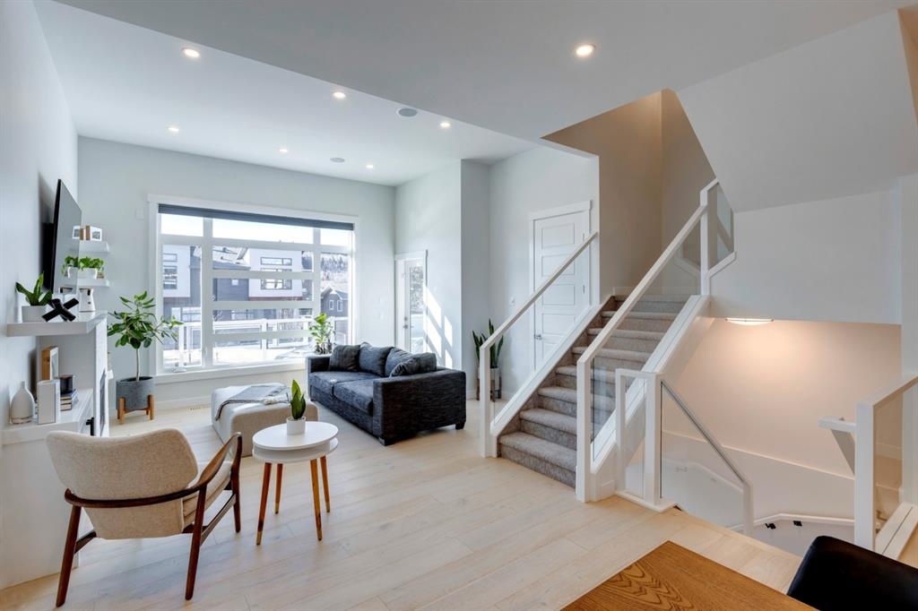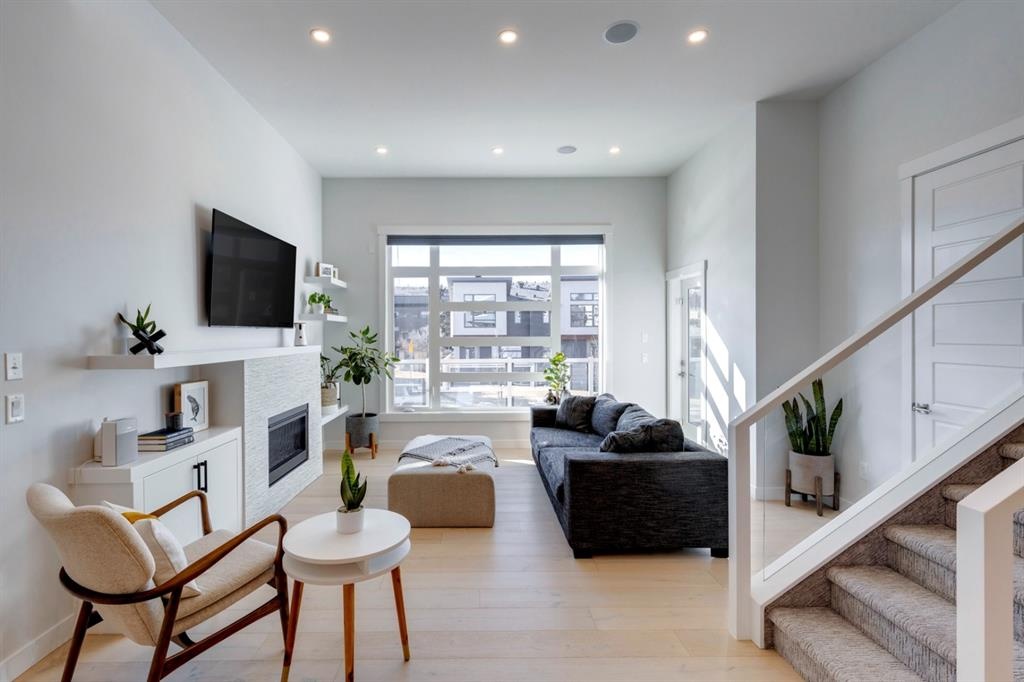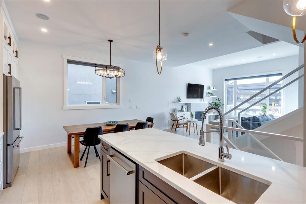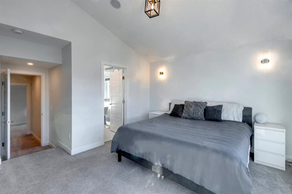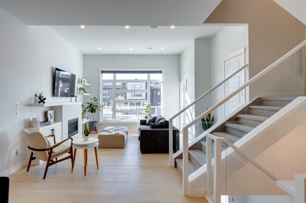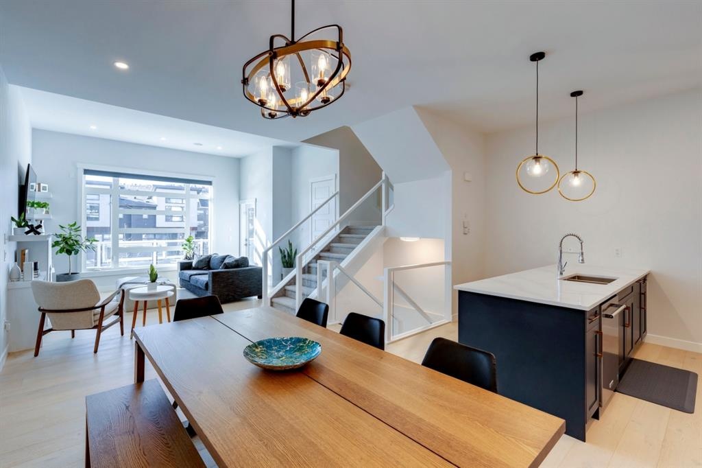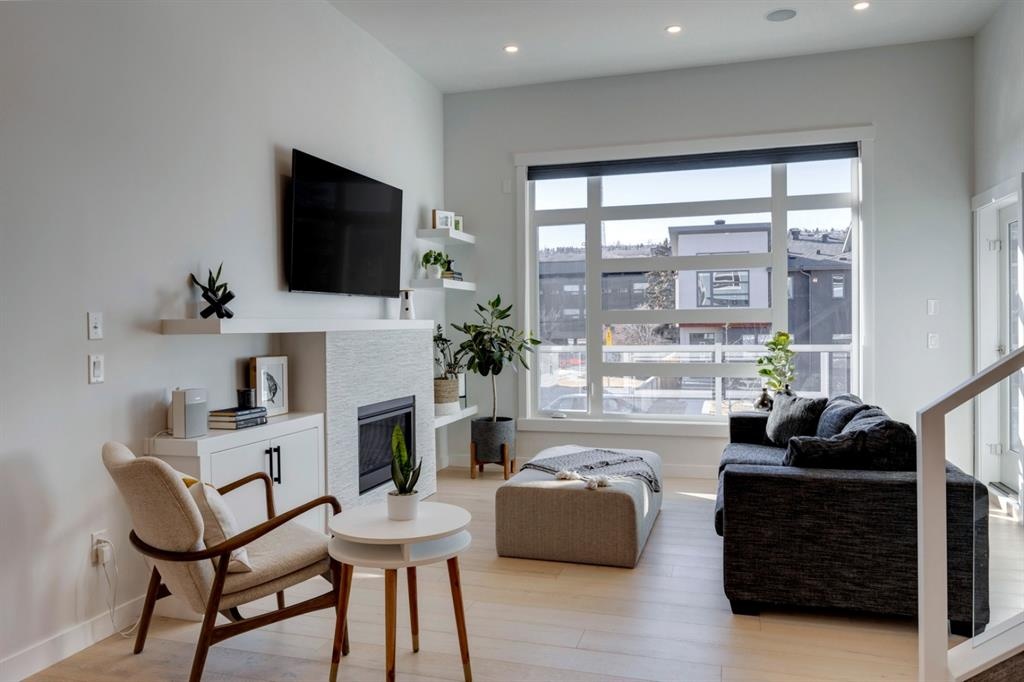 Welcome to this one-of-a-kind, new, rare front unit walkout townhome featuring 3 private outdoor patios. Quality and thoughtfulness went into the design of this stunning home and is perfect for anyone who loves to entertain. As you enter this home, you will be greeted by a ton of natural south light overlooking your spacious lower deck perfect to enjoy the fantastic Calgary evenings as its equipped with a gas hookup for your patio heater and/or barbecue. The ground floor features a well-appointed sunny bedroom, which could be used as your home gym or office, plus a second living room with wet bar as well as full 4-piece bath, the perfect place for your guests. As you enter your main entertaining level, you will fall in love with the gorgeous lighting, beautiful complimentary chefs’ kitchen with a stunning backsplash, large island, and dining area. The main floor also features a well-appointed living room, with a gas fireplace an additional large deck with another gas hook-up that has park views to the east. A half bath completes the main floor. The upper floor features a double master, with a large, oversized master bedroom, vaulted ceilings, walk-in closet, a 3rd private patio, plus a beautiful en-suite complete with dual sinks, stand-alone soaker tub and separate shower with rain dual shower heads and a bench. Down the hall you will find a full-sized laundry room with sink, and an additional bedroom with 4-piece ensuite bathroom. This home also comes with a single detached garage, air-conditioning, built-in speakers throughout, plus a brand-new blinds package adding over 20k of upgrades. Don't miss out on this opportunity to get one of the best townhomes in the inner city as this home has everything you need to enjoy your inner-city lifestyle, its pet friendly and just steps away to peaceful river walks or rides, grocery, transit, and all the amenities within minutes. This is the one you have been waiting for!