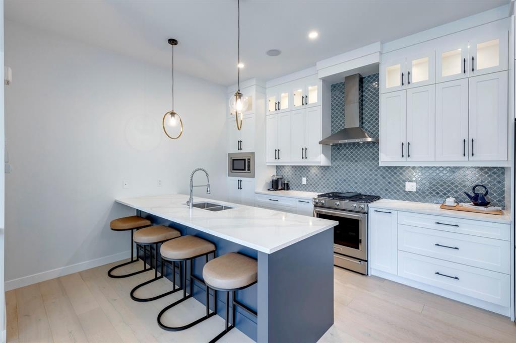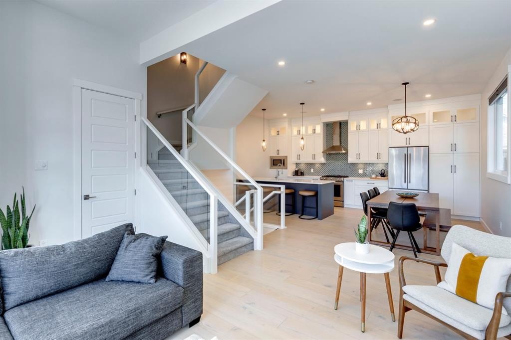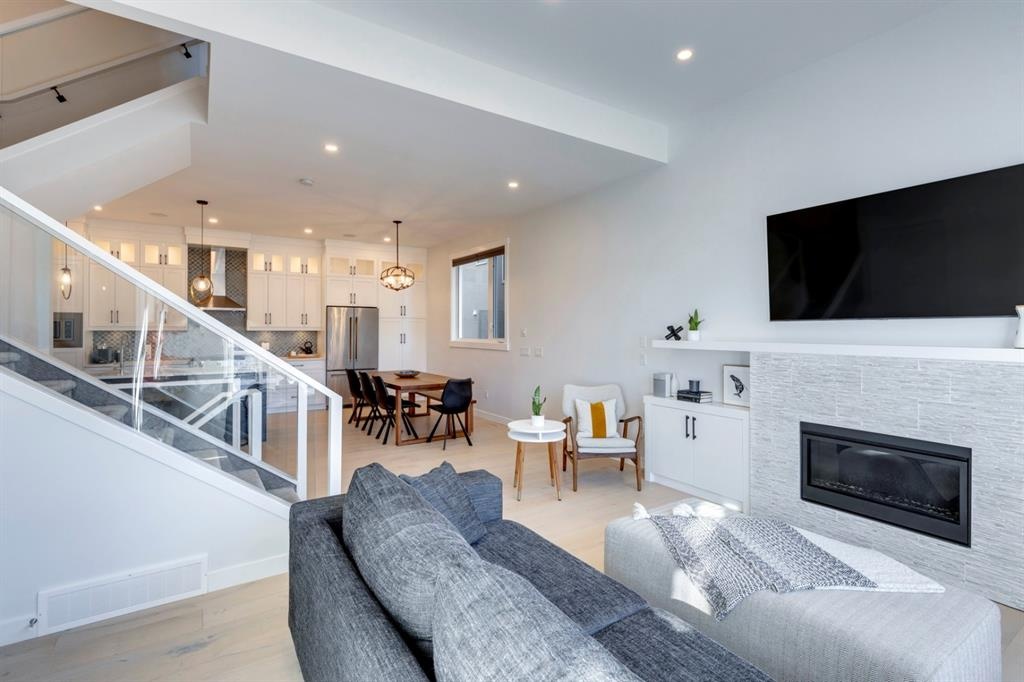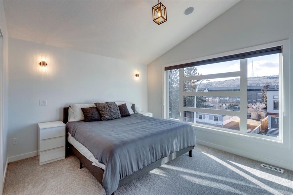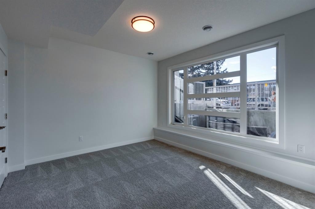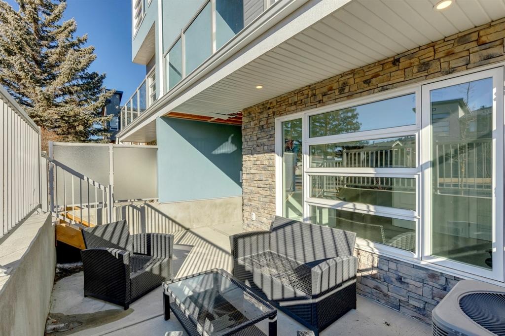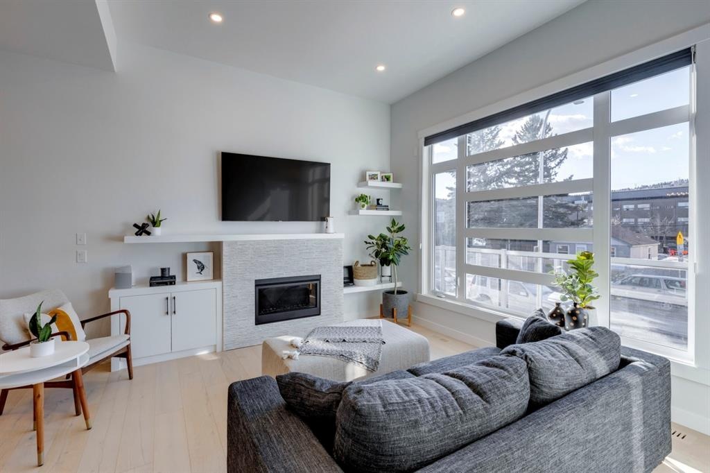 Welcome to this one-of-a-kind, new, rare front unit walkout townhome featuring 3 private outdoor patios. Quality and thoughtfulness went into the design of this stunning home and is perfect for anyone who loves to entertain. As you enter this home, you will be greeted by a ton of natural south light overlooking your spacious lower deck perfect to enjoy the fantastic Calgary evenings as its equipped with a gas hookup for your patio heater and/or barbecue. The ground floor features a well-appointed sunny bedroom, which could be used as your home gym or office, plus a second living room with wet bar as well as full 4-piece bath, the perfect place for your guests. As you enter your main entertaining level, you will fall in love with the gorgeous lighting, beautiful complimentary chefs’ kitchen with a stunning backsplash, large island, and dining area. The main floor also features a well-appointed living room, with a gas fireplace an additional large deck with another gas hook-up that has park views to the east. A half bath completes the main floor. The upper floor features a double master, with a large, oversized master bedroom, vaulted ceilings, walk-in closet, a 3rd private patio, plus a beautiful en-suite complete with dual sinks, stand-alone soaker tub and separate shower with rain dual shower heads and a bench. Down the hall you will find a full-sized laundry room with sink, and an additional bedroom with 4-piece ensuite bathroom. This home also comes with a single detached garage, air-conditioning, built-in speakers throughout, plus a brand-new blinds package adding over 20k of upgrades. Don't miss out on this opportunity to get one of the best townhomes in the inner city as this home has everything you need to enjoy your inner-city lifestyle, its pet friendly and just steps away to peaceful river walks or rides, grocery, transit, and all the amenities within minutes. This is the one you have been waiting for!