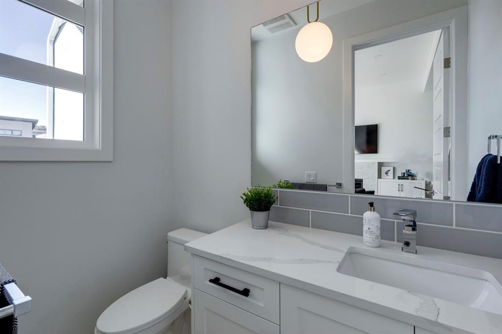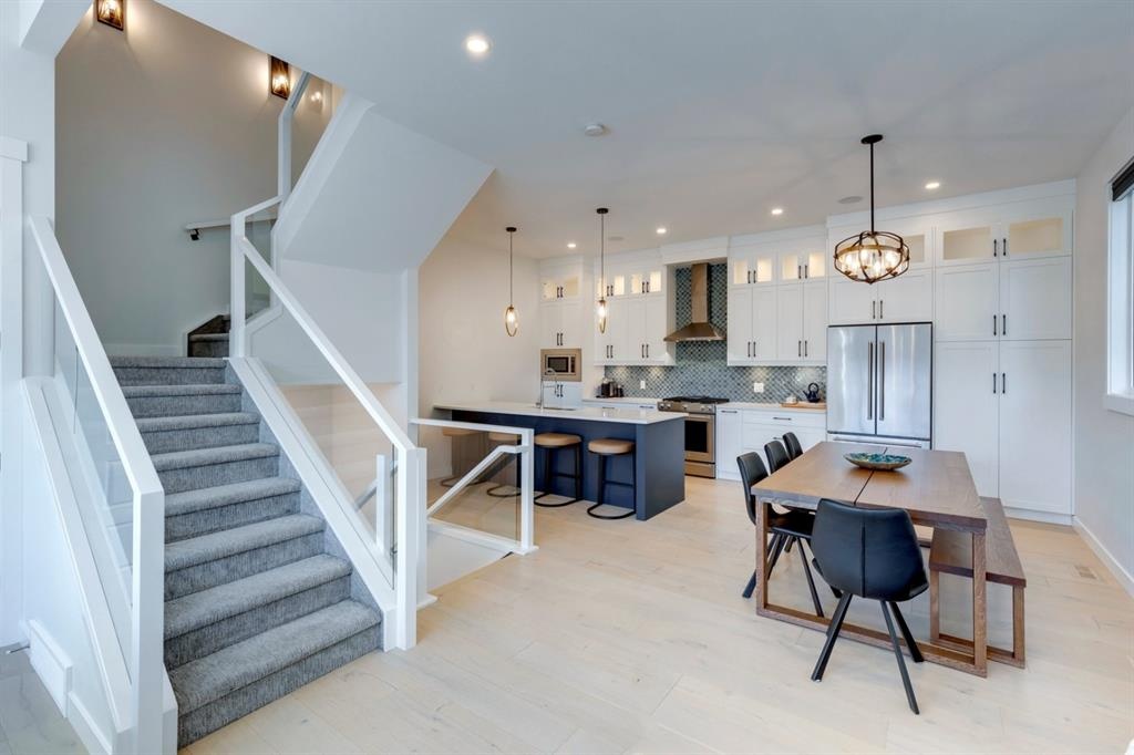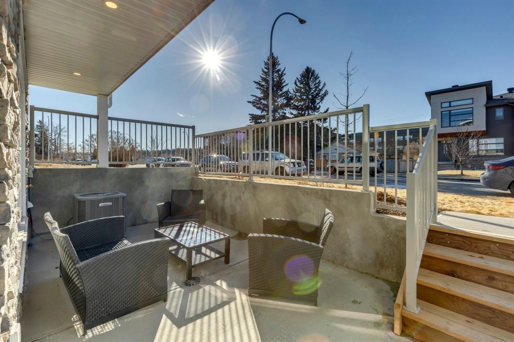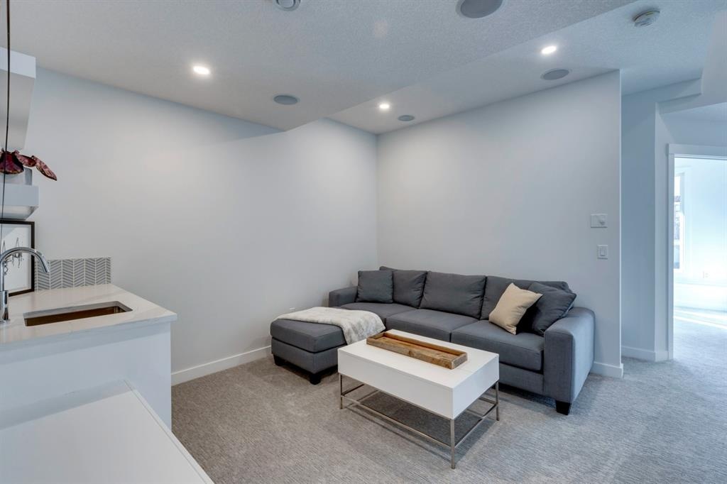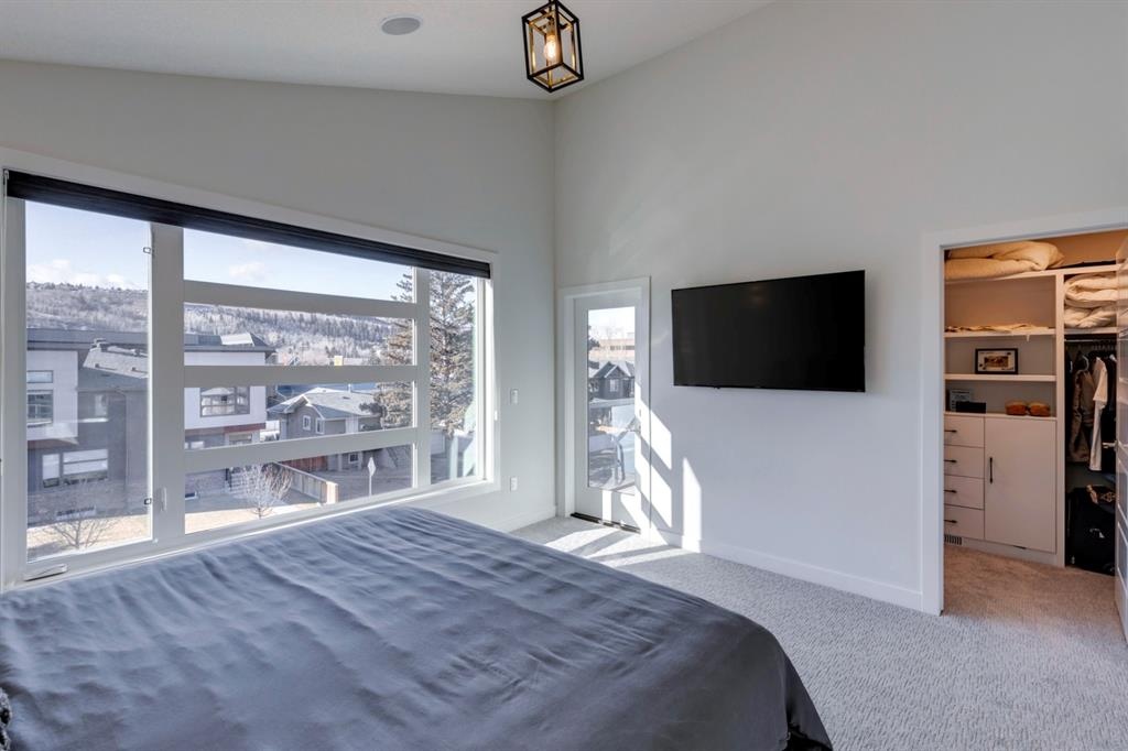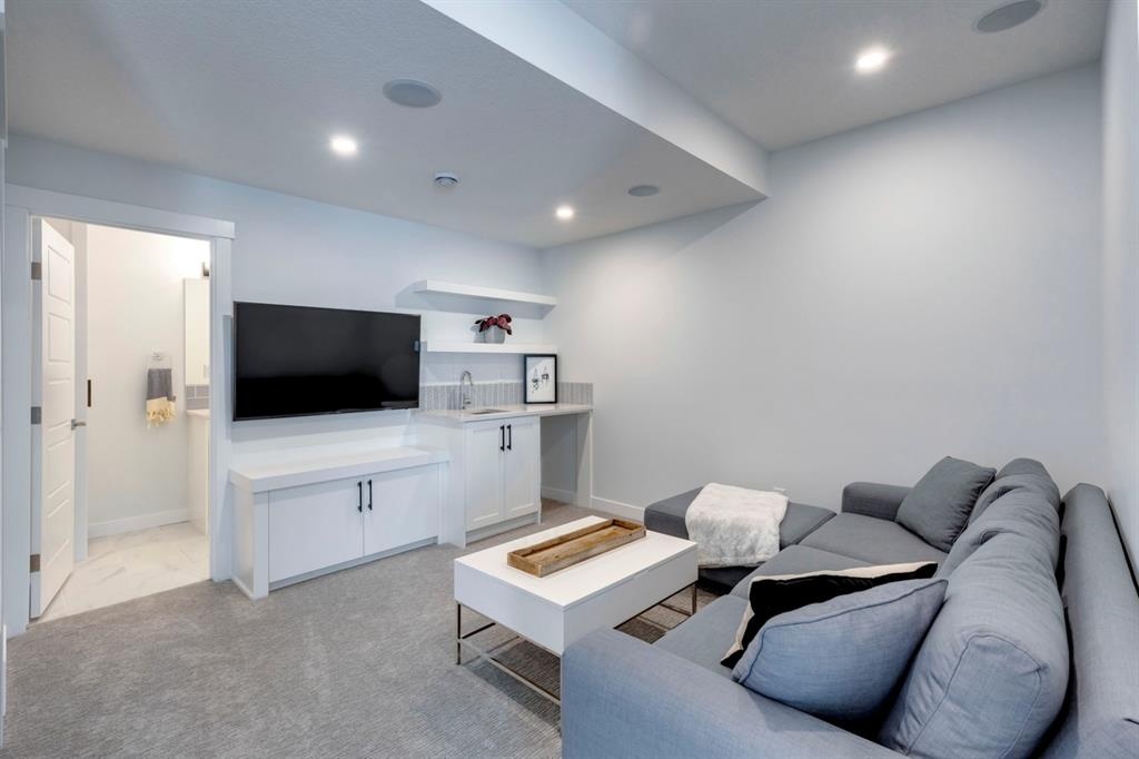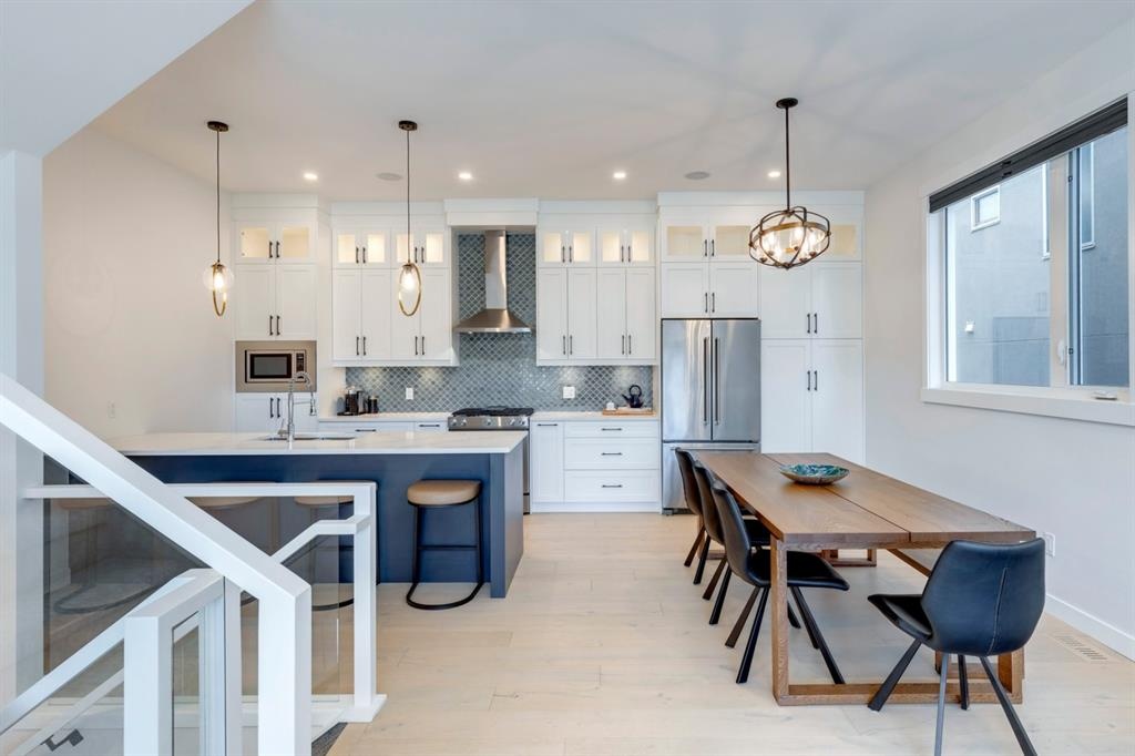 Welcome to this one-of-a-kind, new, rare front unit walkout townhome featuring 3 private outdoor patios. Quality and thoughtfulness went into the design of this stunning home and is perfect for anyone who loves to entertain. As you enter this home, you will be greeted by a ton of natural south light overlooking your spacious lower deck perfect to enjoy the fantastic Calgary evenings as its equipped with a gas hookup for your patio heater and/or barbecue. The ground floor features a well-appointed sunny bedroom, which could be used as your home gym or office, plus a second living room with wet bar as well as full 4-piece bath, the perfect place for your guests. As you enter your main entertaining level, you will fall in love with the gorgeous lighting, beautiful complimentary chefs’ kitchen with a stunning backsplash, large island, and dining area. The main floor also features a well-appointed living room, with a gas fireplace an additional large deck with another gas hook-up that has park views to the east. A half bath completes the main floor. The upper floor features a double master, with a large, oversized master bedroom, vaulted ceilings, walk-in closet, a 3rd private patio, plus a beautiful en-suite complete with dual sinks, stand-alone soaker tub and separate shower with rain dual shower heads and a bench. Down the hall you will find a full-sized laundry room with sink, and an additional bedroom with 4-piece ensuite bathroom. This home also comes with a single detached garage, air-conditioning, built-in speakers throughout, plus a brand-new blinds package adding over 20k of upgrades. Don't miss out on this opportunity to get one of the best townhomes in the inner city as this home has everything you need to enjoy your inner-city lifestyle, its pet friendly and just steps away to peaceful river walks or rides, grocery, transit, and all the amenities within minutes. This is the one you have been waiting for!
