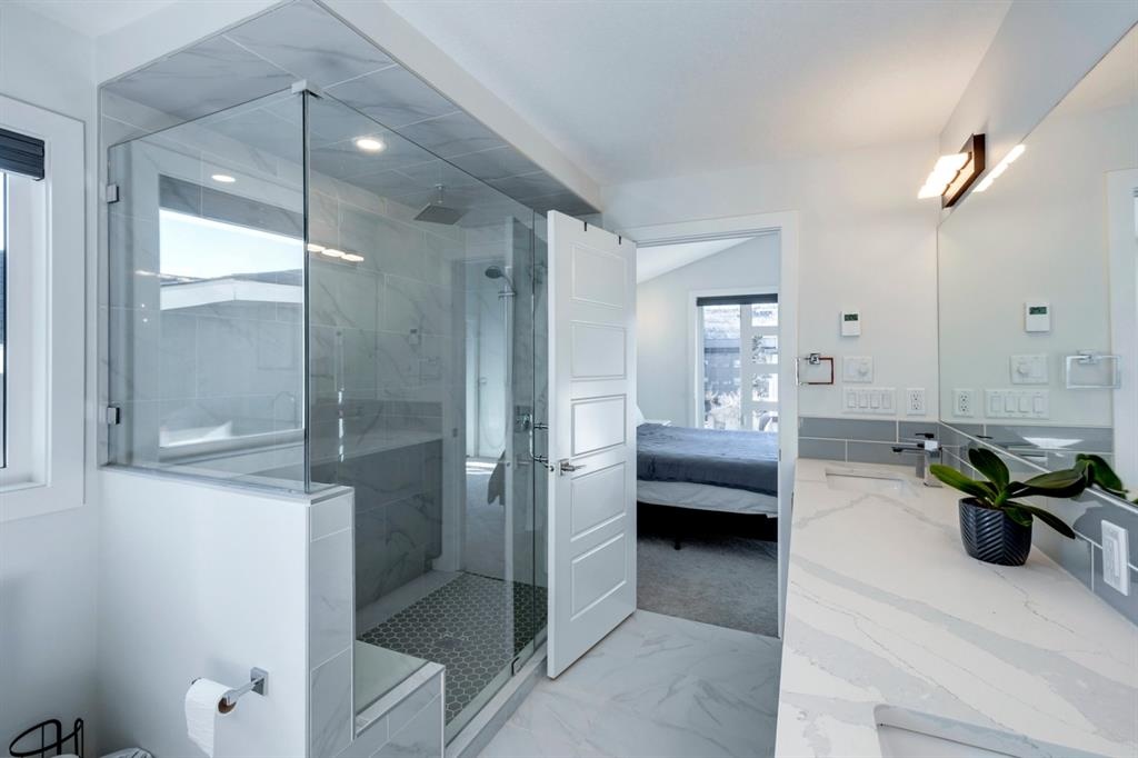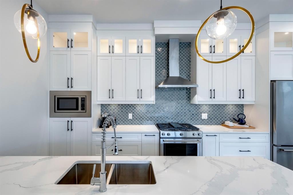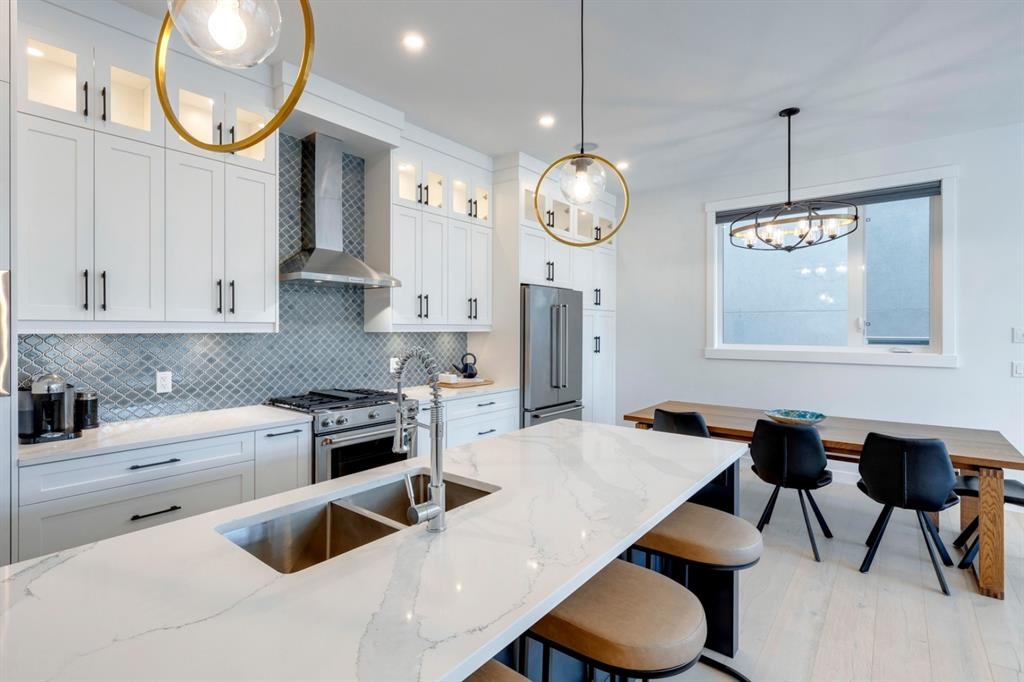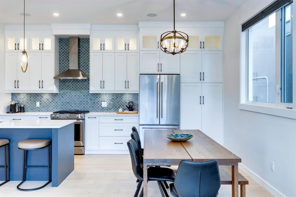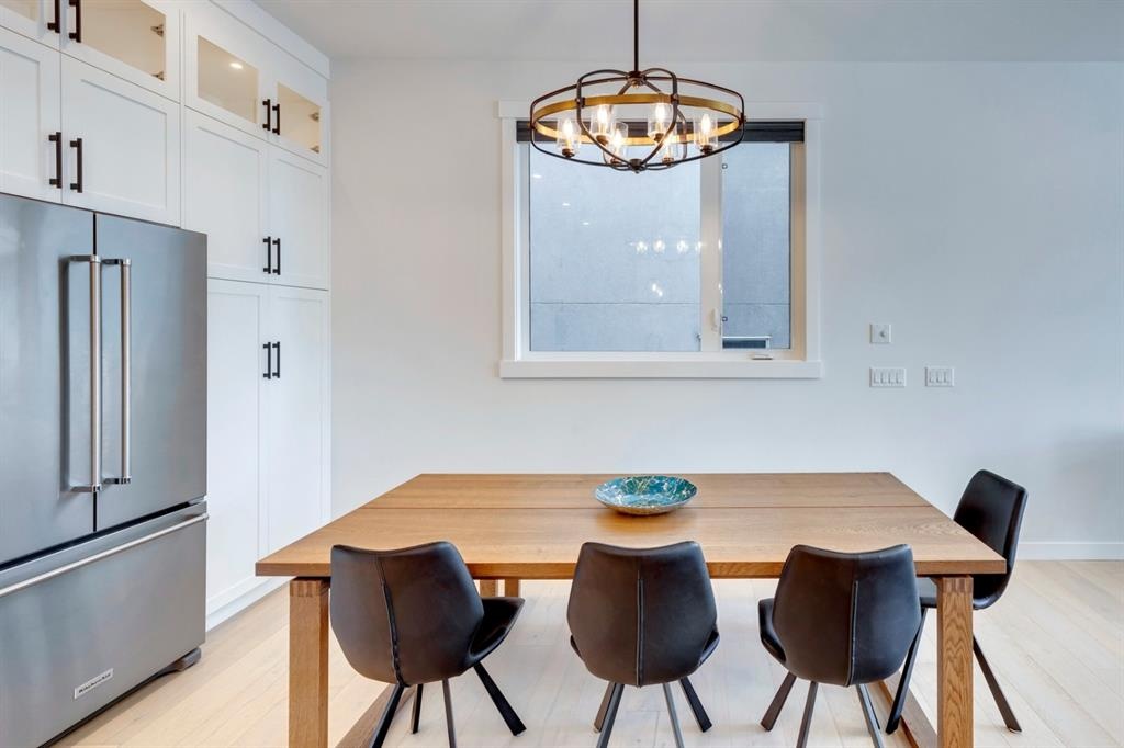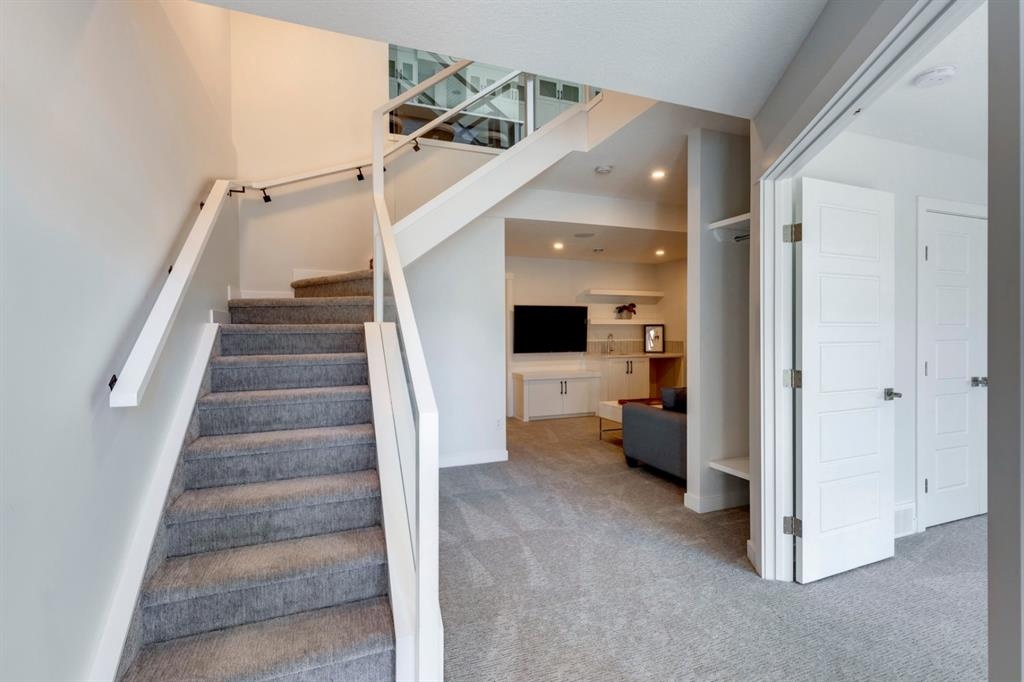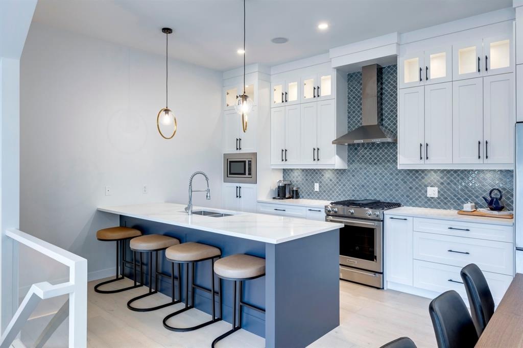 Welcome to this one-of-a-kind, new, rare front unit walkout townhome featuring 3 private outdoor patios. Quality and thoughtfulness went into the design of this stunning home and is perfect for anyone who loves to entertain. As you enter this home, you will be greeted by a ton of natural south light overlooking your spacious lower deck perfect to enjoy the fantastic Calgary evenings as its equipped with a gas hookup for your patio heater and/or barbecue. The ground floor features a well-appointed sunny bedroom, which could be used as your home gym or office, plus a second living room with wet bar as well as full 4-piece bath, the perfect place for your guests. As you enter your main entertaining level, you will fall in love with the gorgeous lighting, beautiful complimentary chefs’ kitchen with a stunning backsplash, large island, and dining area. The main floor also features a well-appointed living room, with a gas fireplace an additional large deck with another gas hook-up that has park views to the east. A half bath completes the main floor. The upper floor features a double master, with a large, oversized master bedroom, vaulted ceilings, walk-in closet, a 3rd private patio, plus a beautiful en-suite complete with dual sinks, stand-alone soaker tub and separate shower with rain dual shower heads and a bench. Down the hall you will find a full-sized laundry room with sink, and an additional bedroom with 4-piece ensuite bathroom. This home also comes with a single detached garage, air-conditioning, built-in speakers throughout, plus a brand-new blinds package adding over 20k of upgrades. Don't miss out on this opportunity to get one of the best townhomes in the inner city as this home has everything you need to enjoy your inner-city lifestyle, its pet friendly and just steps away to peaceful river walks or rides, grocery, transit, and all the amenities within minutes. This is the one you have been waiting for!