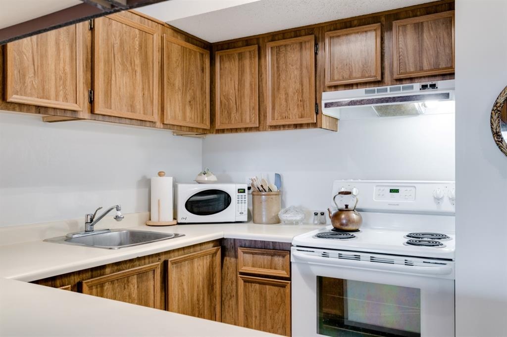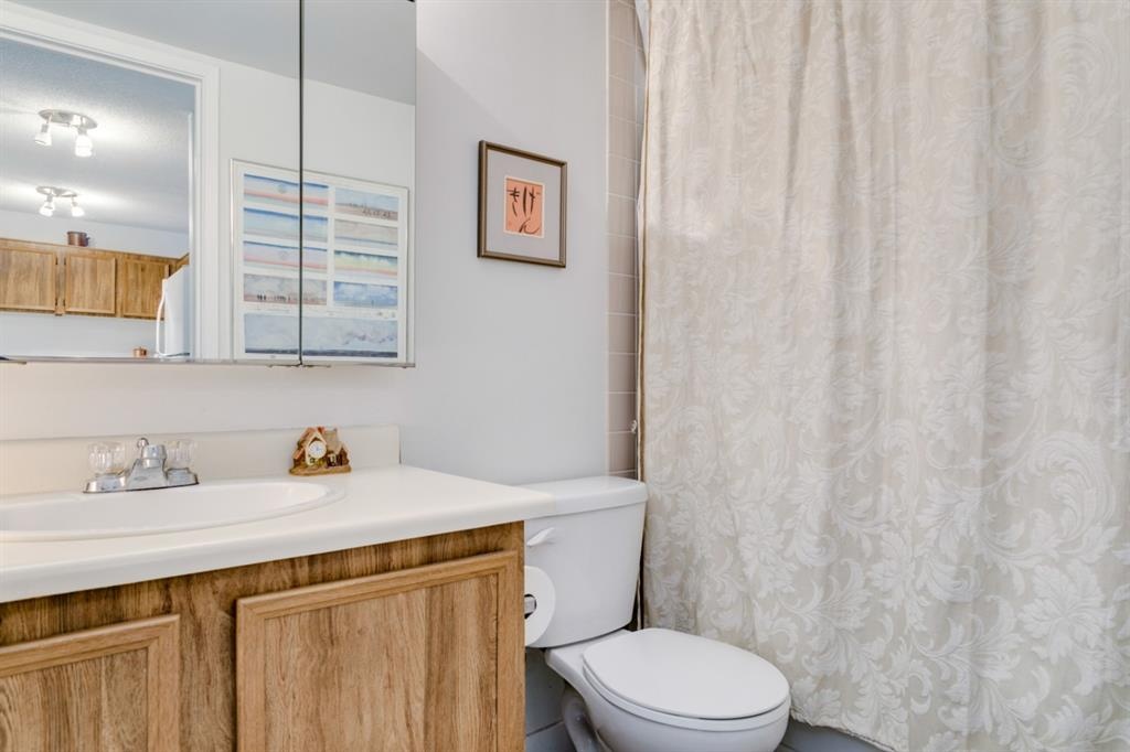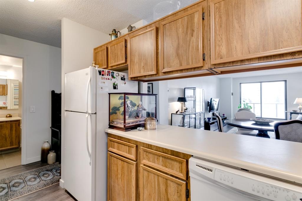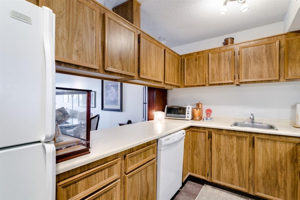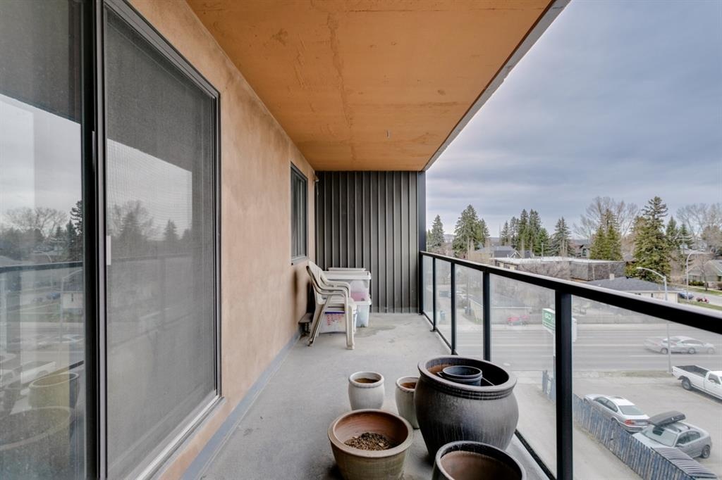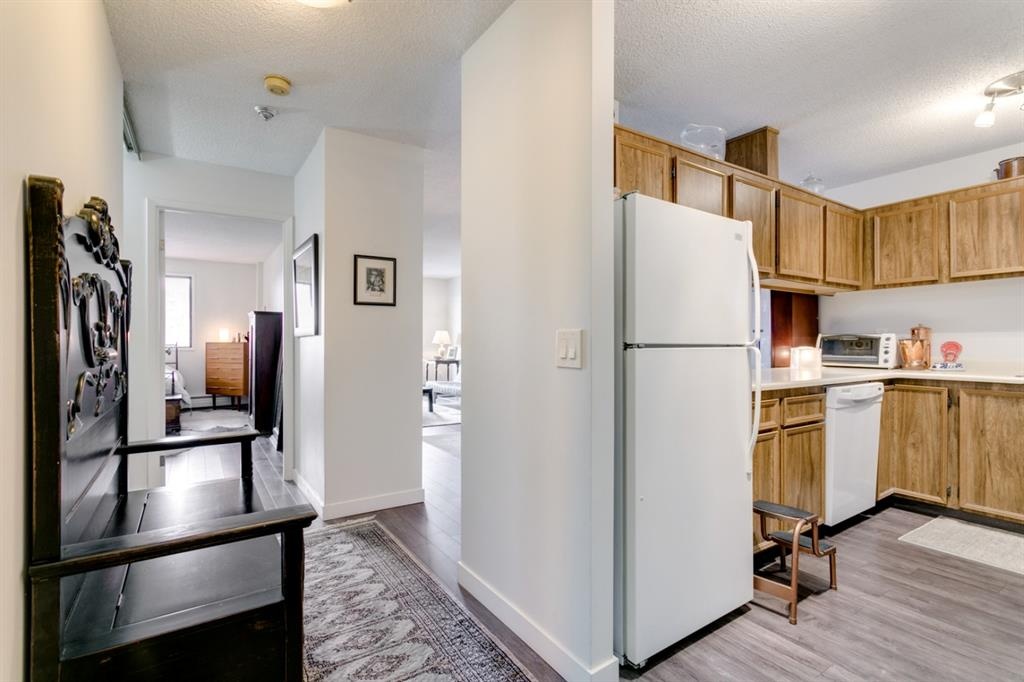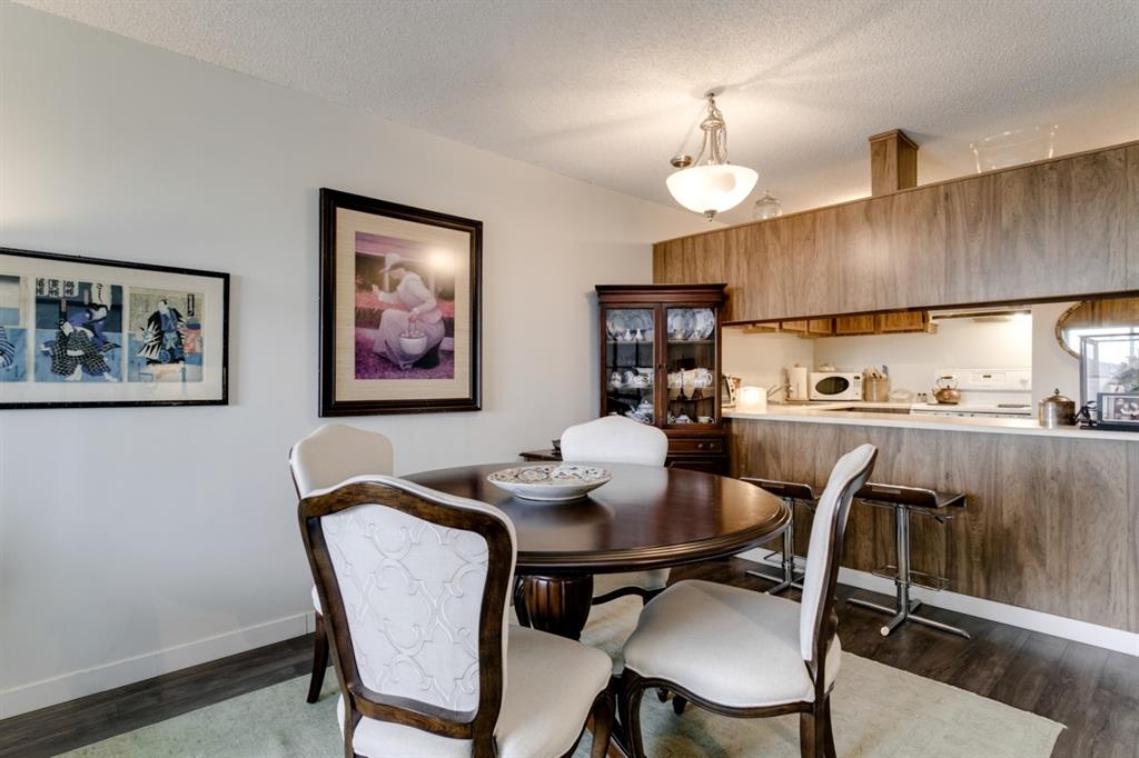 Fantastic 1 bed 1 bath unit with downtown views in a concrete building for under 200k! At 760 sqft this unit has a spacious layout, with new laminate flooring throughout, a large bedroom and huge balcony with amazing downtown views in Killarney Manor. This 4th floor unit has been meticulously kept and features an open concept living/dining room, plus a large kitchen with tons of storage. This home also was built with storage in mind; an additional storage room could be used as a pantry as well as a oversized front closet as well as a laundry room with additional storage and a newer washer/dryer. Additional features include assigned parking stall in the heated underground, a social room, and a fantastic 7th floor rooftop patio surrounded by panoramic views in all directions. Available for quick possession in this fantastic building, in this prime central location just minutes to downtown & shopping, Shaganappi golf course & LRT!