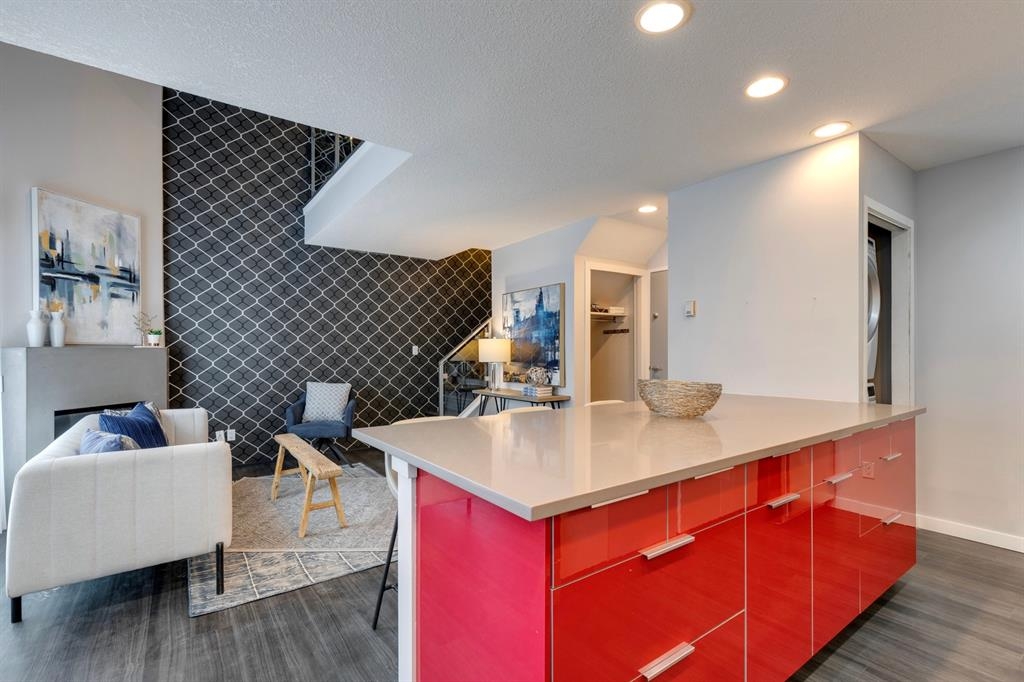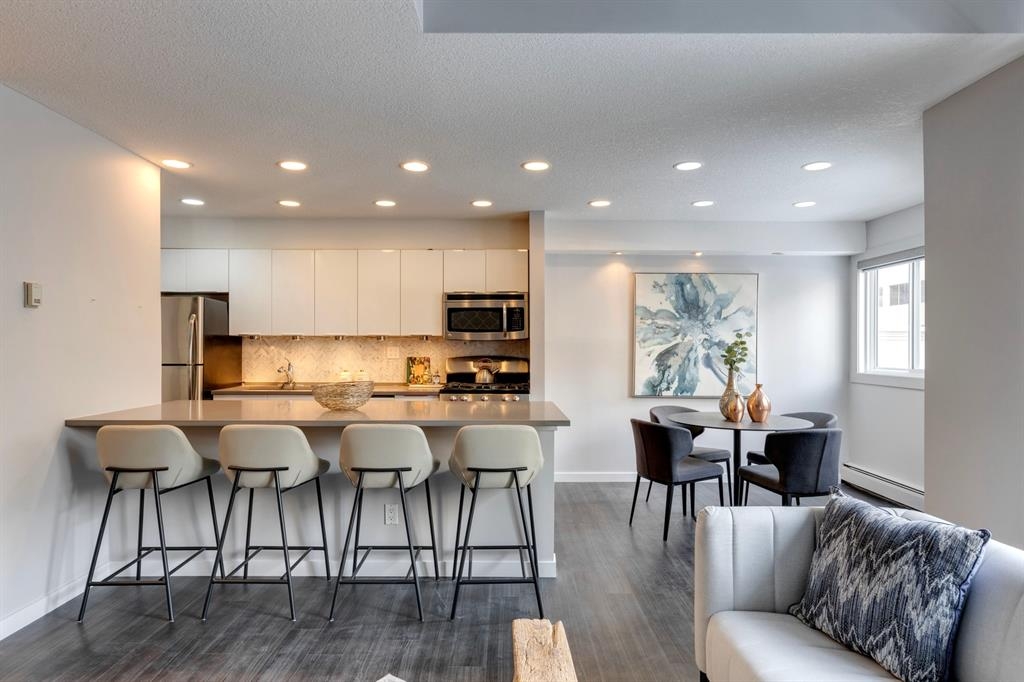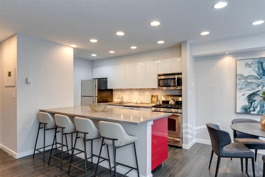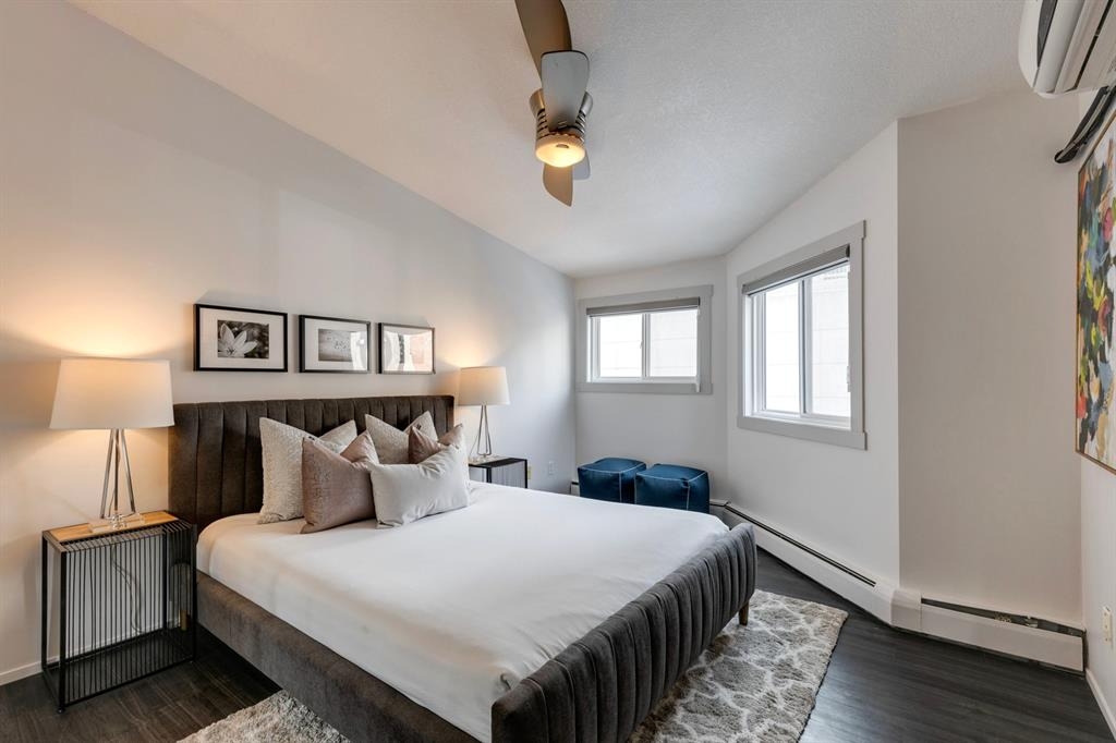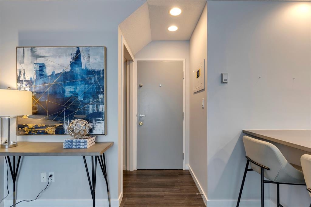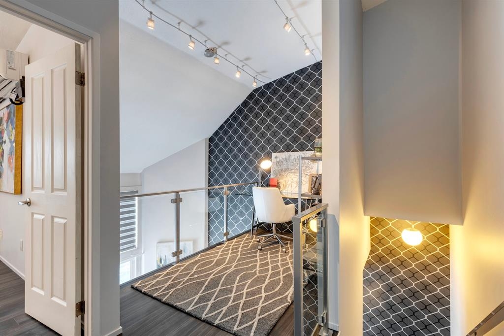If you’re looking for a modern and unique renovated loft in the heart of downtown, you have it. This two floor 1 bed/1 bath + den loft has everything you need to enjoy. As you enter on the main floor you will notice the open concept, modern colour palette and layout which is ideal for entertaining. A large island overlooks the living space and overlooks a newer modern kitchen with plenty of counter space, stainless steel appliances, an area for dining and laundry tucked away in the corner. As you flow into the south facing living room you can get cozy and enjoy those winter evenings by the fireplace or head upstairs to your flex space/den which could be used as an office or a home gym. Adjacent to the den is a large bedroom and 4-piece bath. Other features include a sunny south facing private patio, one parking stall, brand new flooring, new blinds and the unit has been freshly painted. Enjoy the ability to walk a few steps to Alforno, the Peace Bridge, Eau Claire and more, this central location will have you enjoying everything Calgary’s inner city has to offer.