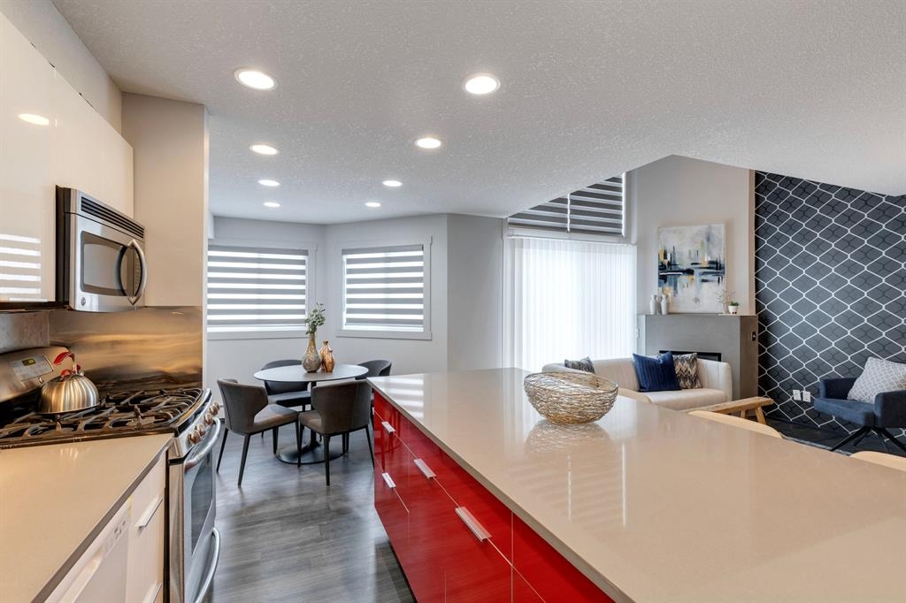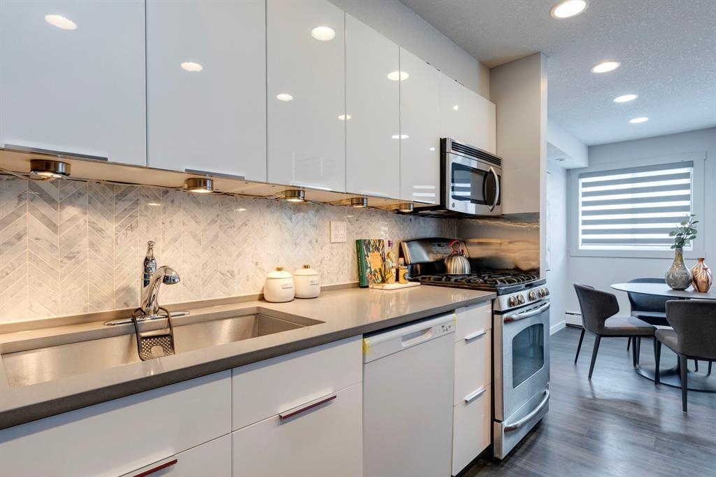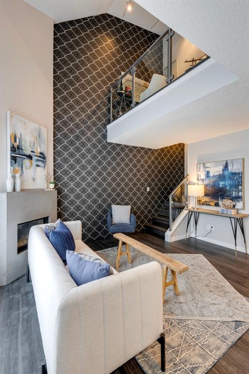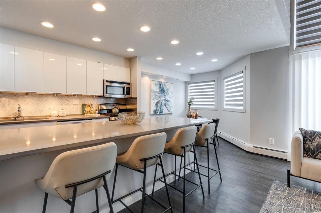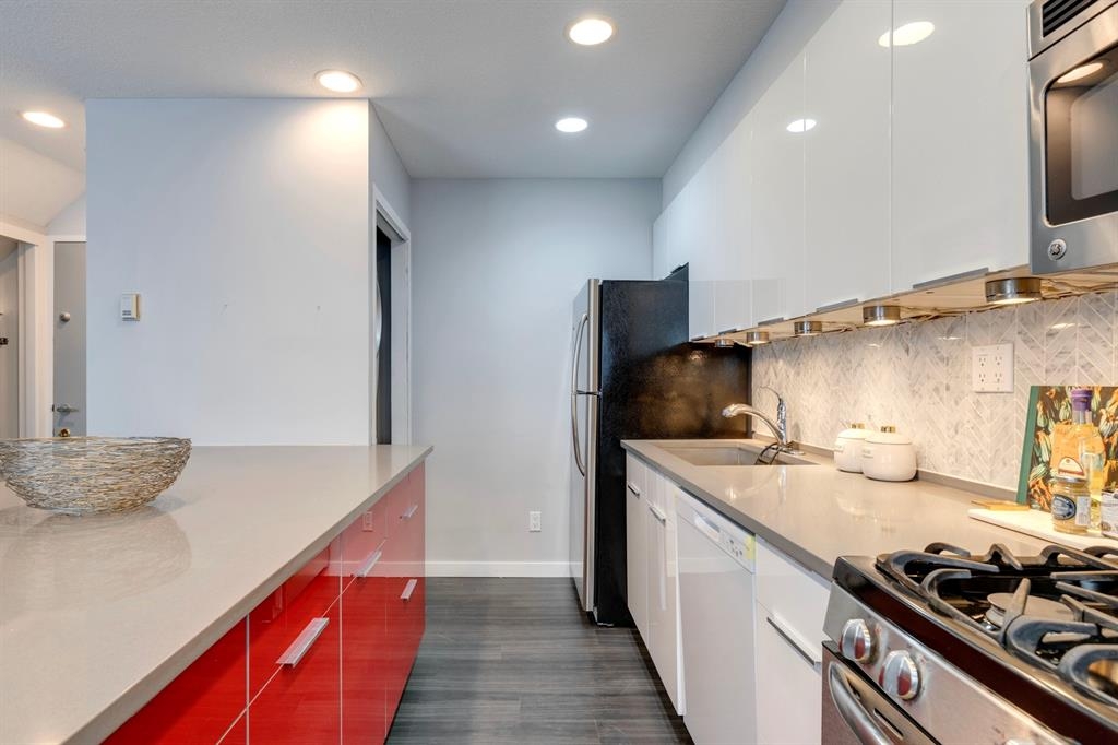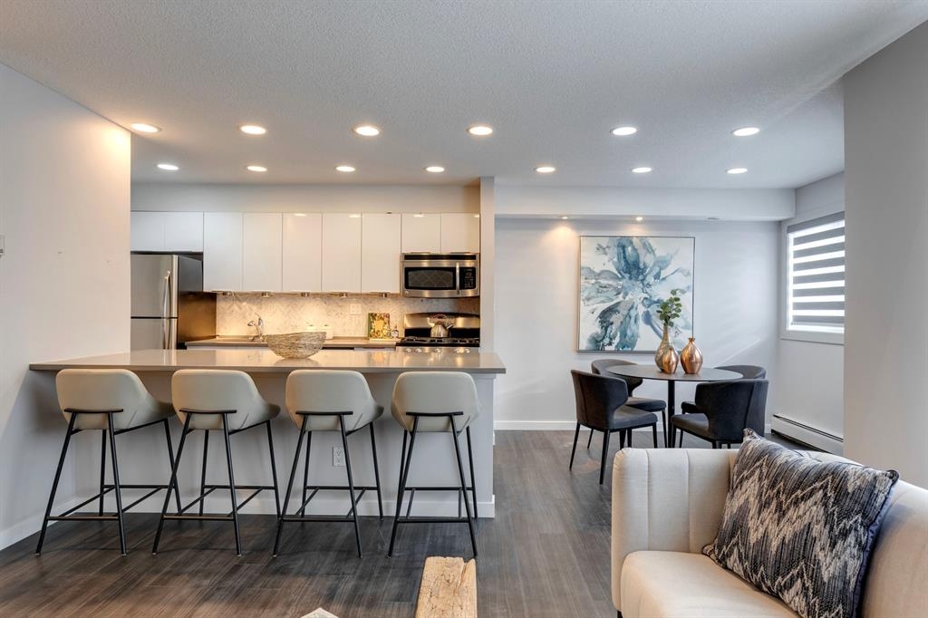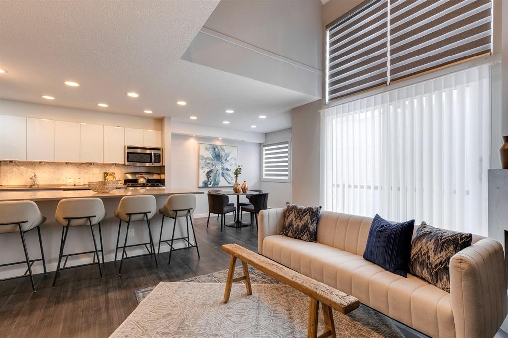 If you’re looking for a modern and unique renovated loft in the heart of downtown, you have it. This two floor 1 bed/1 bath + den loft has everything you need to enjoy. As you enter on the main floor you will notice the open concept, modern colour palette and layout which is ideal for entertaining. A large island overlooks the living space and overlooks a newer modern kitchen with plenty of counter space, stainless steel appliances, an area for dining and laundry tucked away in the corner. As you flow into the south facing living room you can get cozy and enjoy those winter evenings by the fireplace or head upstairs to your flex space/den which could be used as an office or a home gym. Adjacent to the den is a large bedroom and 4-piece bath. Other features include a sunny south facing private patio, one parking stall, brand new flooring, new blinds and the unit has been freshly painted. Enjoy the ability to walk a few steps to Alforno, the Peace Bridge, Eau Claire and more, this central location will have you enjoying everything Calgary’s inner city has to offer.