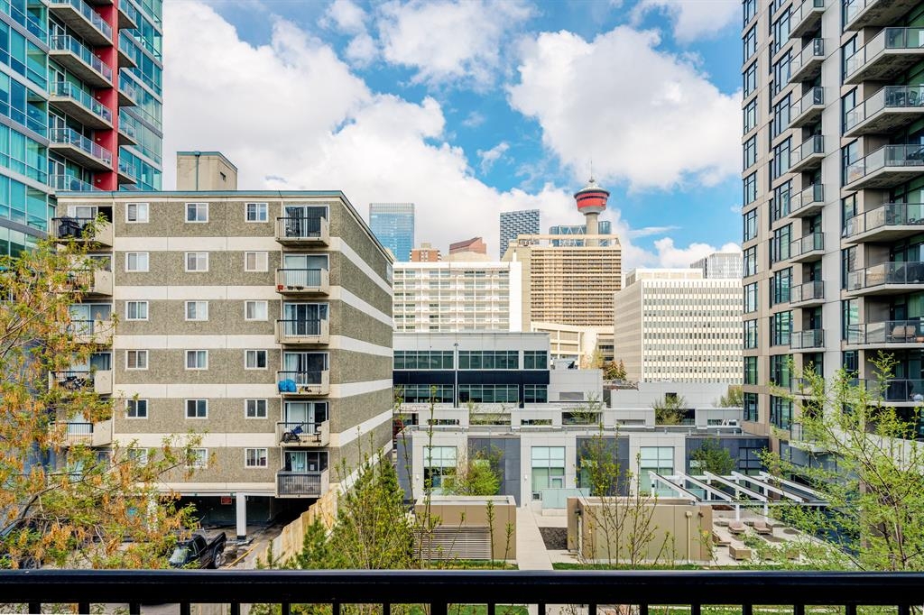 Welcome to this 2 bed, 2 bath unit in Polo Terrace building in Victoria Park. With over 900 sqft of living space, an underground titled parking stall and walkability to all the great amenities this is the perfect place to call home. This spacious unit has a welcoming entrance and the ideal layout, with bedrooms on opposite sides of the living room, a spacious kitchen with breakfast bar, an adjacent corner pantry w/in-suite laundry, a dining area, living room w/corner gas fireplace, plus access to the covered balcony which has absolutely amazing views over downtown including the Calgary tower. This home features a large master bedroom with walk-thru closet leading to a 4-piece ensuite, as well as a 2nd bedroom which is desirably located on the other side of the unit with an additional 4 piece bath. This complex has a beautiful lot w/tons of trees, plus an incredible location in trendy beltline, 1st Street amenities, and just seconds from MacLeod, the C-train, or a quick walk wherever you need to go for shopping, groceries, restaurants, the gym, central memorial park, + more. Fantastic central location to all the great amenities of downtown Calgary!