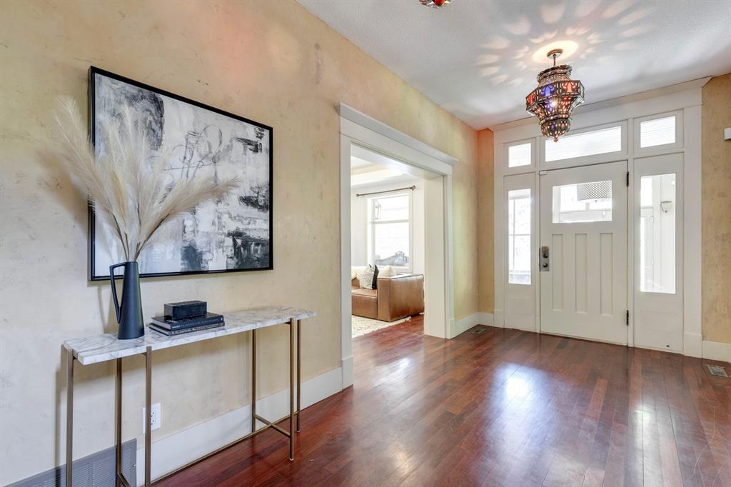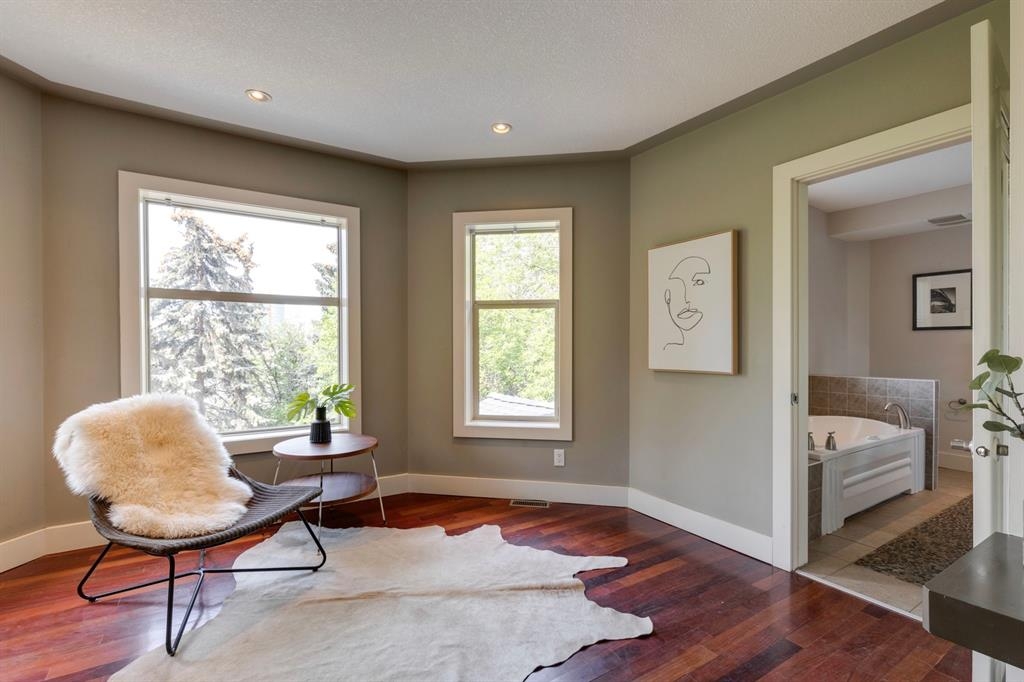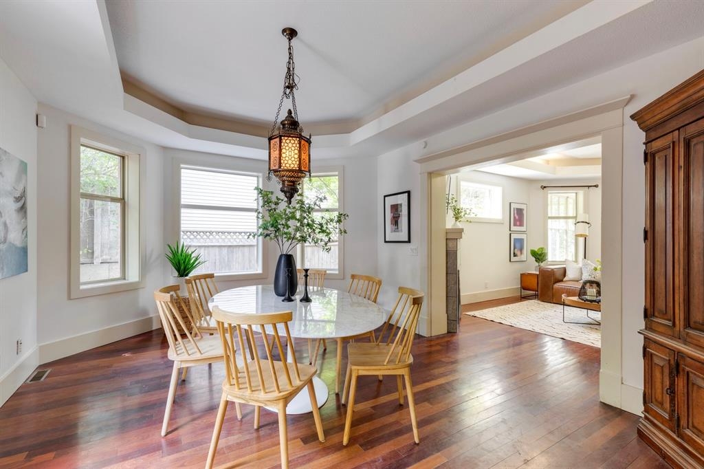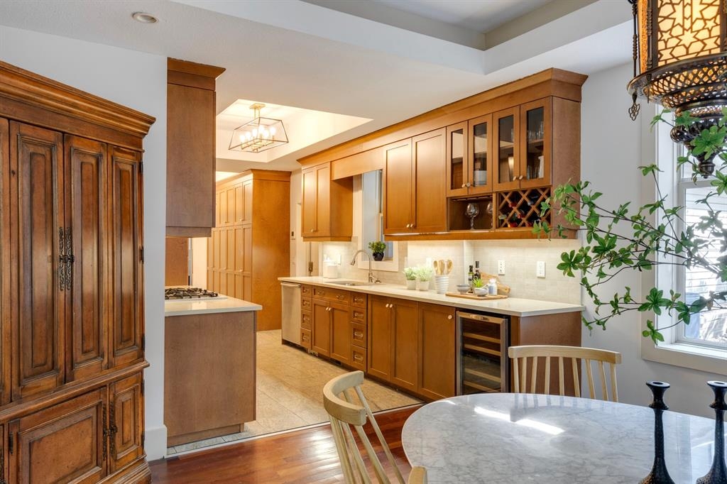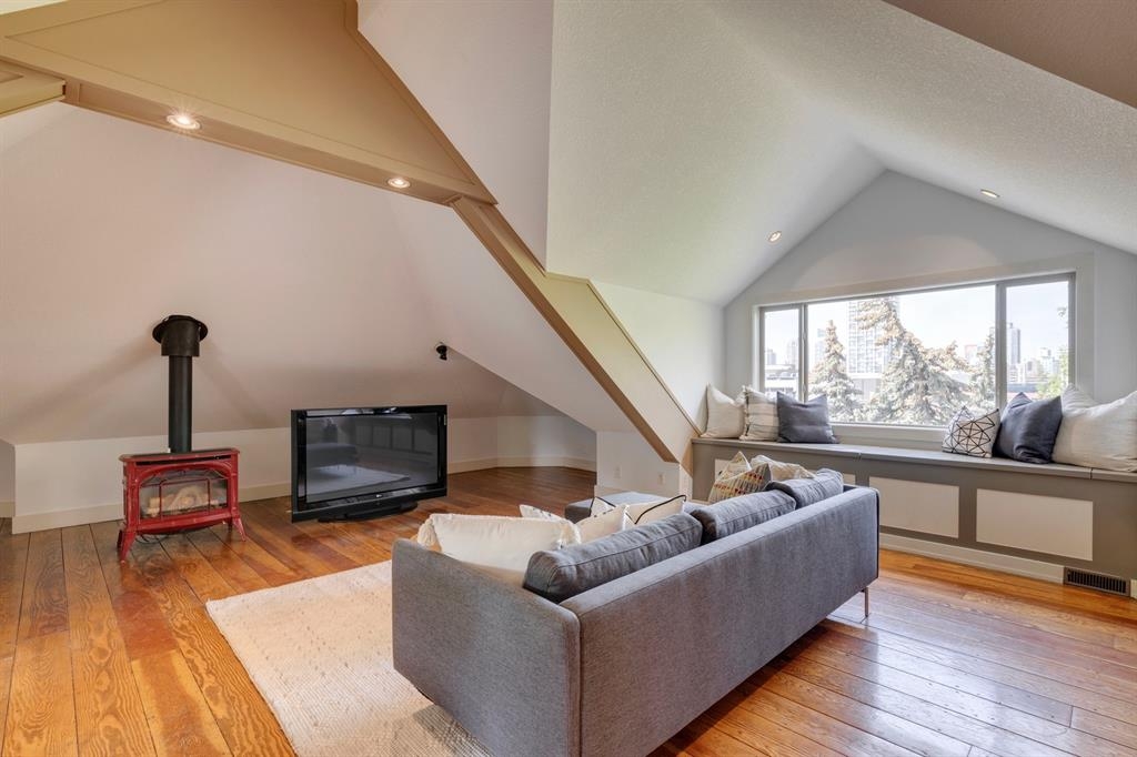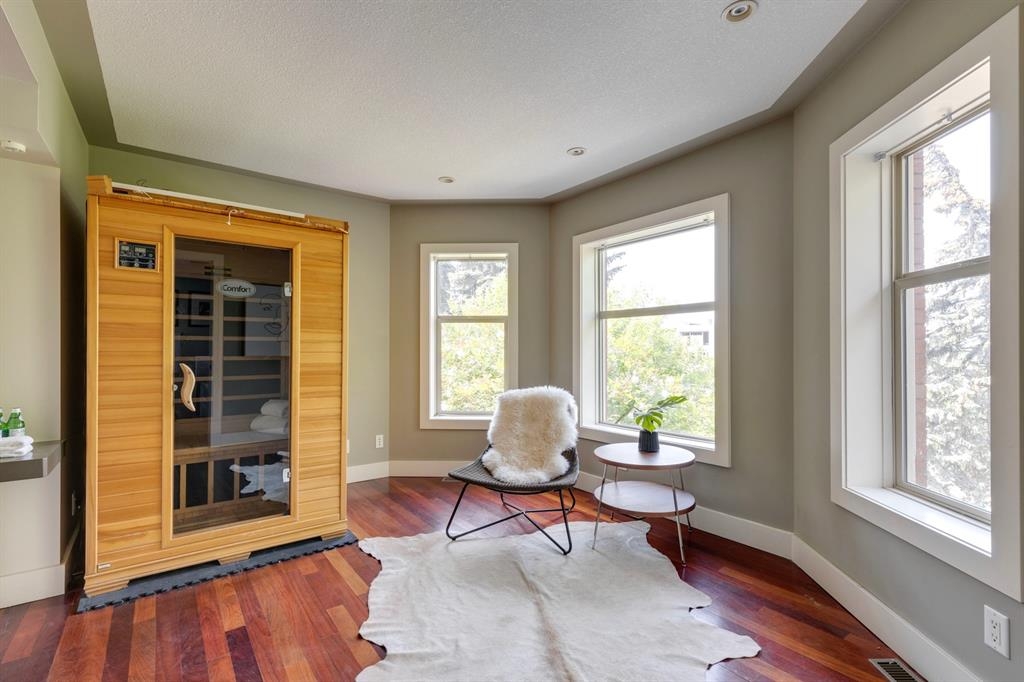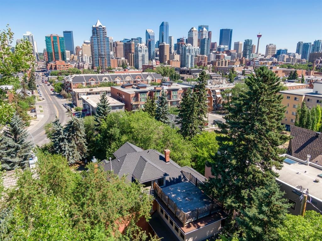 Step into the pages of Calgary's history with this exceptional residence that carries the legacy of Reuben Rupert Jamieson, Calgary's Mayor from 1908 to 1910. Perched overlooking Calgary’s gorgeous skyline, this stunning heritage brick home sits on .25 acre of land tucked away on a private lot in the prominent neighborhood of Upper Mount Royal. This home was built for entertaining as it features over 4600 sqft of developed space, plus plenty of outdoor space with tons of potential to incorporate traditional designs of its heritage features yet incorporate transitional elements. With 3.5 baths and the ability to have 6 bedrooms (4 up 2 down) the home needs no introduction when arriving as it lures you in. Step into the beautiful sun-soaked enclosed veranda space overlooking a private tree filled front yard with ample parking, greenspace, perfect to enjoy your morning coffee or afternoon reading. As you enter the residence you are greeted with a spacious foyer that sets the stage for the living spaces that lie beyond. The main floor flows perfectly through French doors into a beautiful dining room with a stunning chandelier to set the stage for all your entertaining, adjacent to the dining you will find a spacious and inviting living room with fireplace to cozy up in all seasons. The updated gourmet kitchen is a culinary enthusiast's dream, with tons of storage, quartz countertops, top-of-the-line stainless steel appliances, and more. An additional large flex nook space could be used as a breakfast nook, den, or cocktail room. Finishing out this floor is a conveniently located updated powder room as well as access to the attached double garage. The second level is home to the expansive primary bedroom to wind down overlooking Calgary’s skyline. This spacious room features a flex seating area, two walk-in closets as well as a well appointed ensuite 5-piece ensuite with in-floor heating, a jacuzzi tub, steam shower and dual sinks. It doesn’t stop there, this floor also features 2 additional good-sized bedrooms, a 4-piece bathroom, laundry, plus a spacious flex room over the garage which could be used as a 4th bedroom, studio/office, or media room. Ascend the final set of stairs to the third level loft where breathtaking downtown views await. This versatile space can be utilized as a family/media room or an additional bedroom and provides access to a large rooftop terrace, offering views of the city skyline. With a private side entrance, the lower level could be used as a nanny suite as it is fully developed and presents a haven for entertainment and relaxation, featuring a large recreation room, a wine cellar, a home gym, a 4-piece guest bathroom, and a convenient kitchenette. The private yard invites you to unwind, with a landscaped backyard and large brick patio. Embrace the opportunity to own a piece of Calgary's history and create your own legacy in this remarkable home.