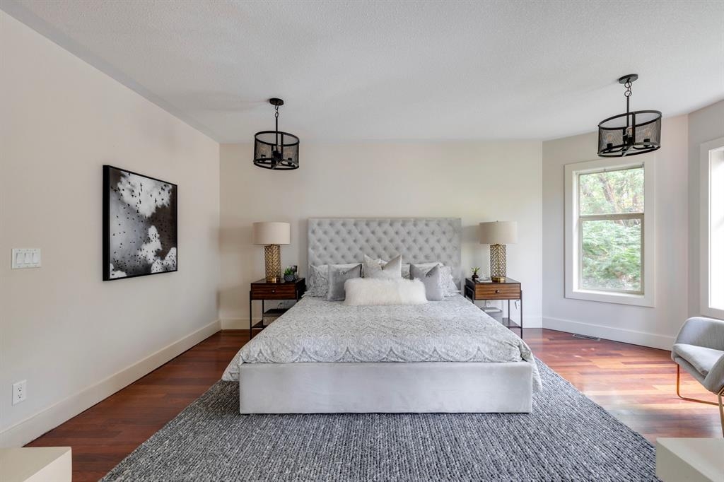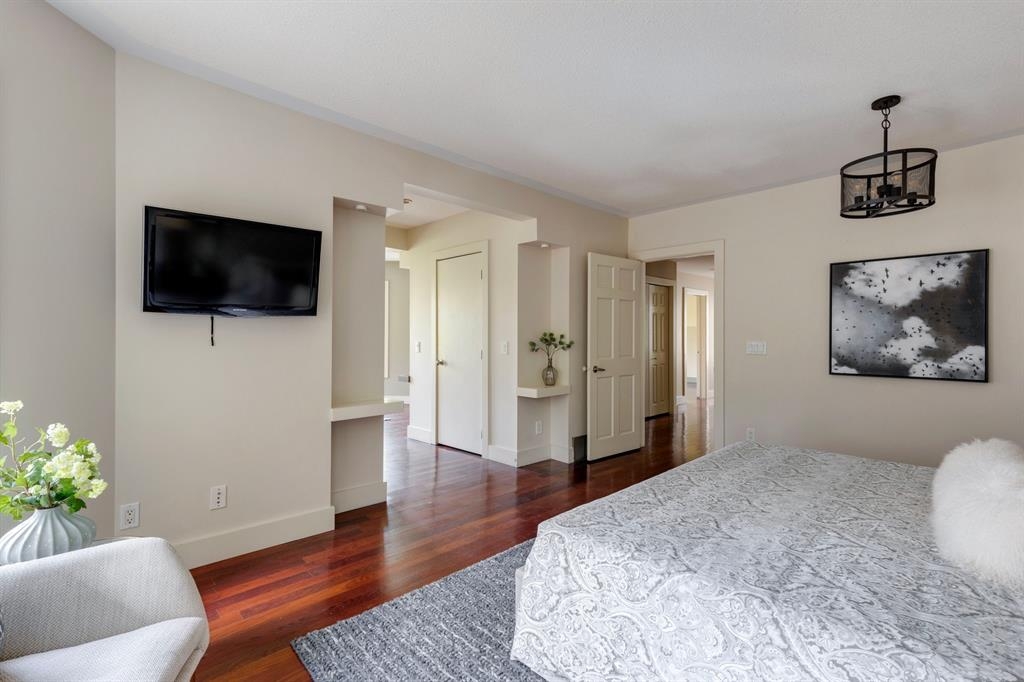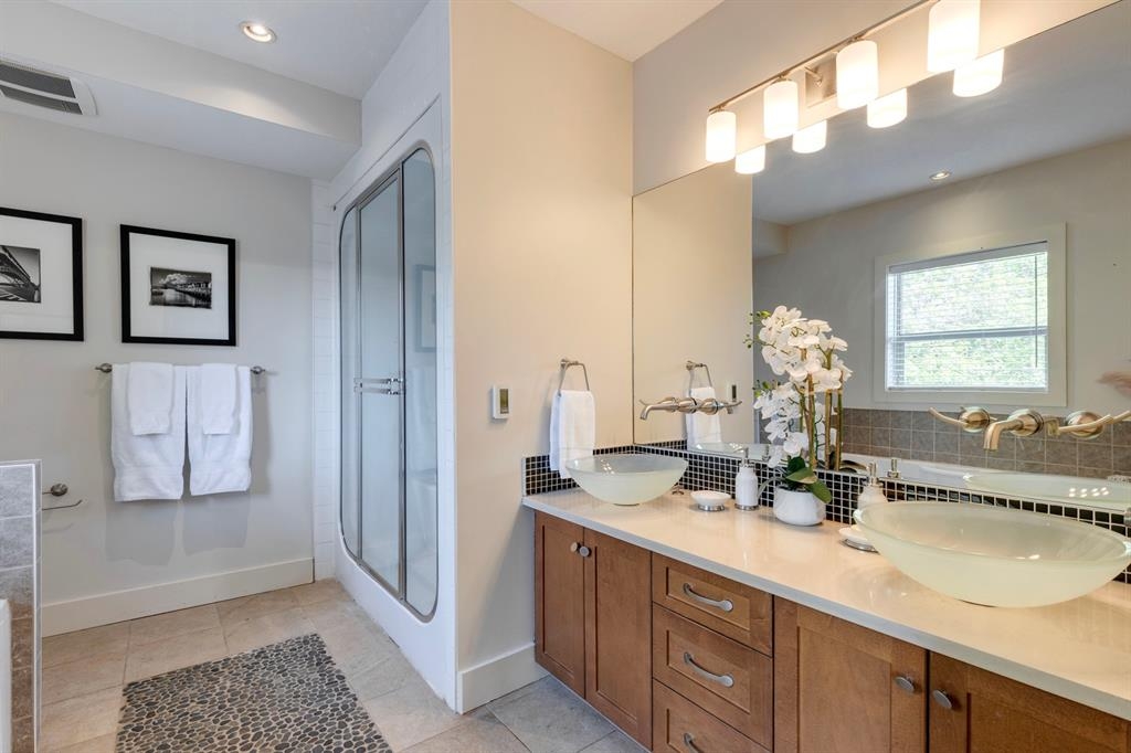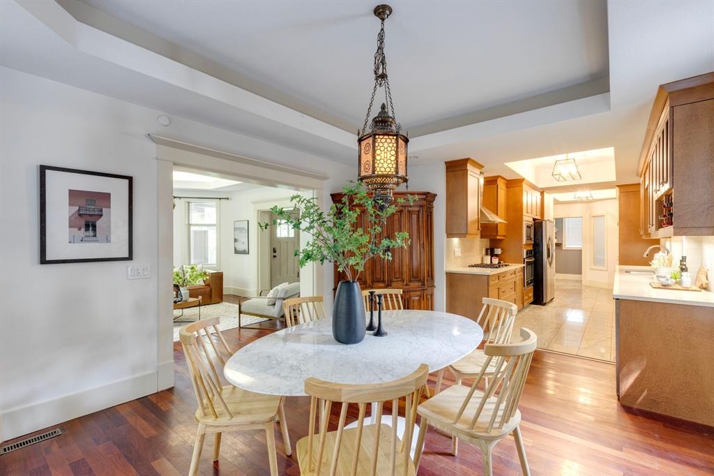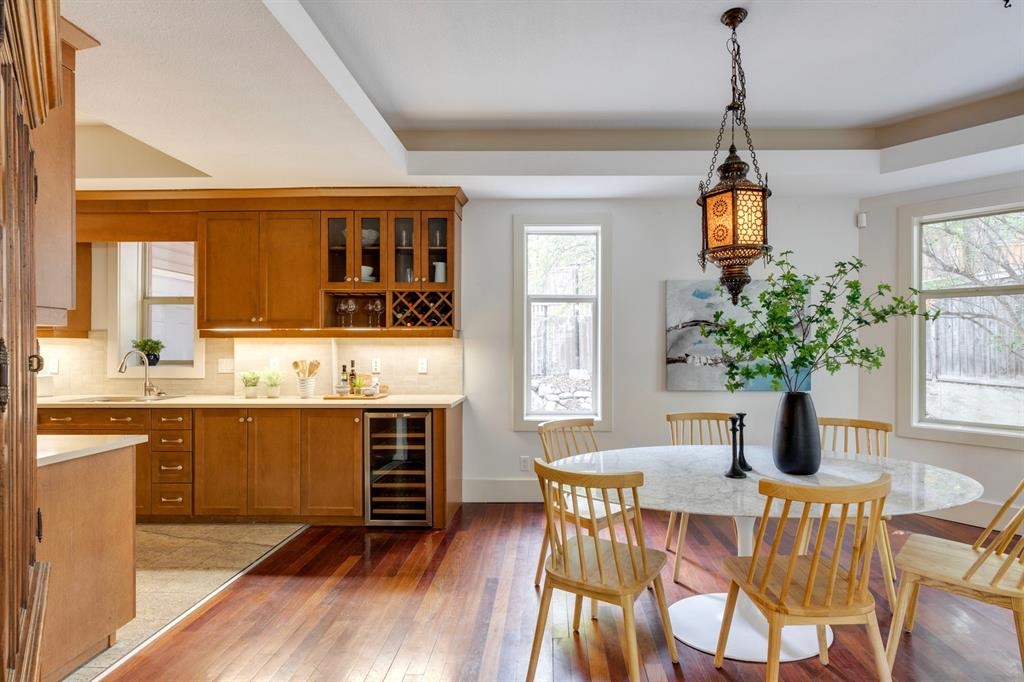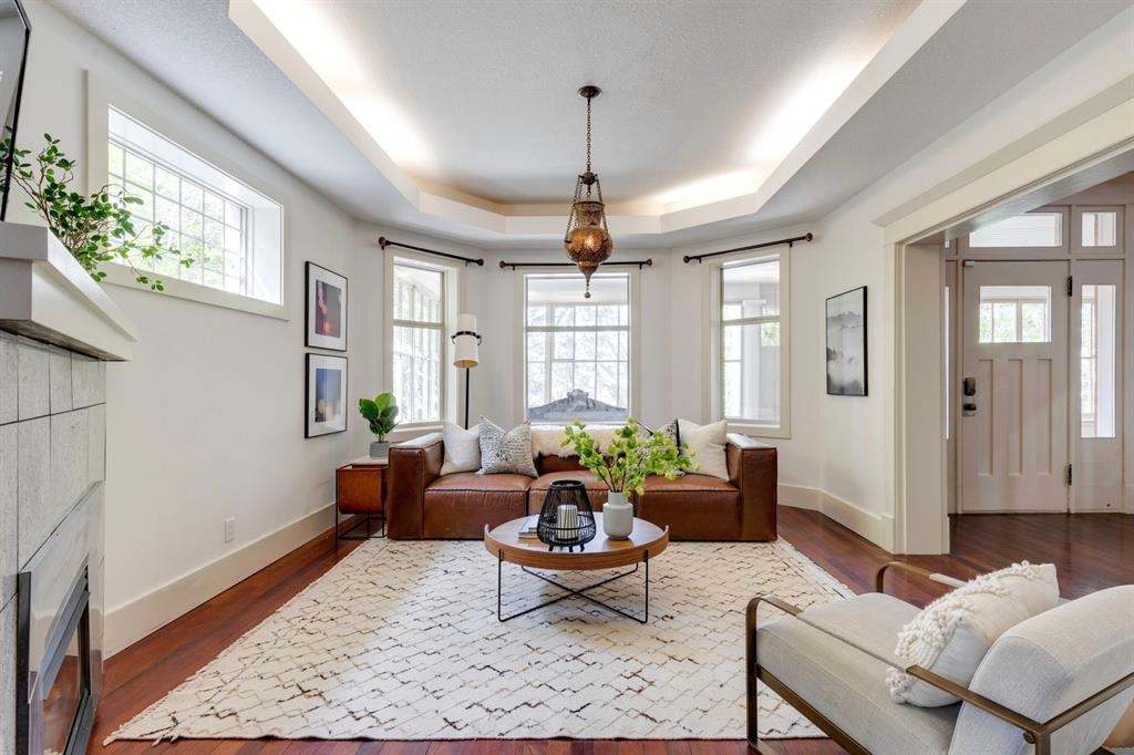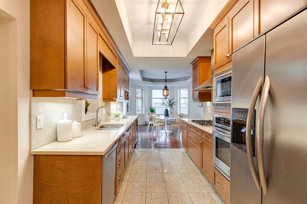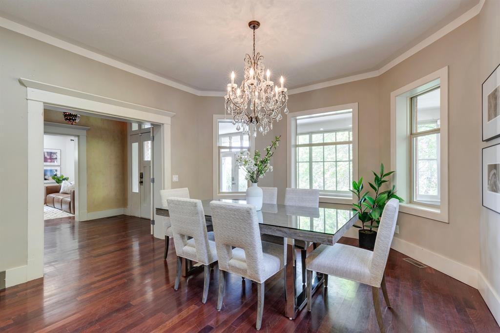 Step into the pages of Calgary's history with this exceptional residence that carries the legacy of Reuben Rupert Jamieson, Calgary's Mayor from 1908 to 1910. Perched overlooking Calgary’s gorgeous skyline, this stunning heritage brick home sits on .25 acre of land tucked away on a private lot in the prominent neighborhood of Upper Mount Royal. This home was built for entertaining as it features over 4600 sqft of developed space, plus plenty of outdoor space with tons of potential to incorporate traditional designs of its heritage features yet incorporate transitional elements. With 3.5 baths and the ability to have 6 bedrooms (4 up 2 down) the home needs no introduction when arriving as it lures you in. Step into the beautiful sun-soaked enclosed veranda space overlooking a private tree filled front yard with ample parking, greenspace, perfect to enjoy your morning coffee or afternoon reading. As you enter the residence you are greeted with a spacious foyer that sets the stage for the living spaces that lie beyond. The main floor flows perfectly through French doors into a beautiful dining room with a stunning chandelier to set the stage for all your entertaining, adjacent to the dining you will find a spacious and inviting living room with fireplace to cozy up in all seasons. The updated gourmet kitchen is a culinary enthusiast's dream, with tons of storage, quartz countertops, top-of-the-line stainless steel appliances, and more. An additional large flex nook space could be used as a breakfast nook, den, or cocktail room. Finishing out this floor is a conveniently located updated powder room as well as access to the attached double garage. The second level is home to the expansive primary bedroom to wind down overlooking Calgary’s skyline. This spacious room features a flex seating area, two walk-in closets as well as a well appointed ensuite 5-piece ensuite with in-floor heating, a jacuzzi tub, steam shower and dual sinks. It doesn’t stop there, this floor also features 2 additional good-sized bedrooms, a 4-piece bathroom, laundry, plus a spacious flex room over the garage which could be used as a 4th bedroom, studio/office, or media room. Ascend the final set of stairs to the third level loft where breathtaking downtown views await. This versatile space can be utilized as a family/media room or an additional bedroom and provides access to a large rooftop terrace, offering views of the city skyline. With a private side entrance, the lower level could be used as a nanny suite as it is fully developed and presents a haven for entertainment and relaxation, featuring a large recreation room, a wine cellar, a home gym, a 4-piece guest bathroom, and a convenient kitchenette. The private yard invites you to unwind, with a landscaped backyard and large brick patio. Embrace the opportunity to own a piece of Calgary's history and create your own legacy in this remarkable home.
