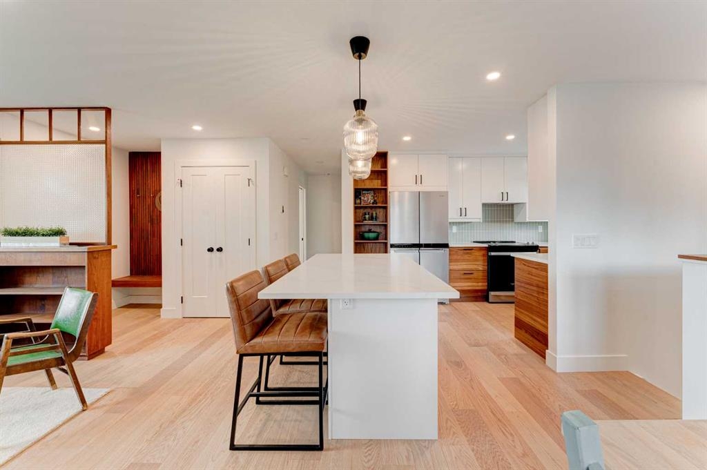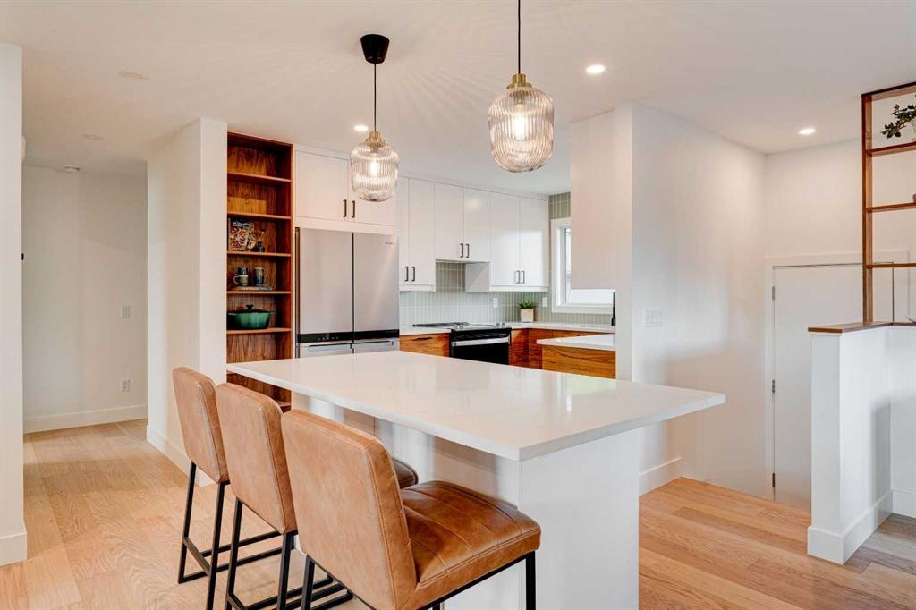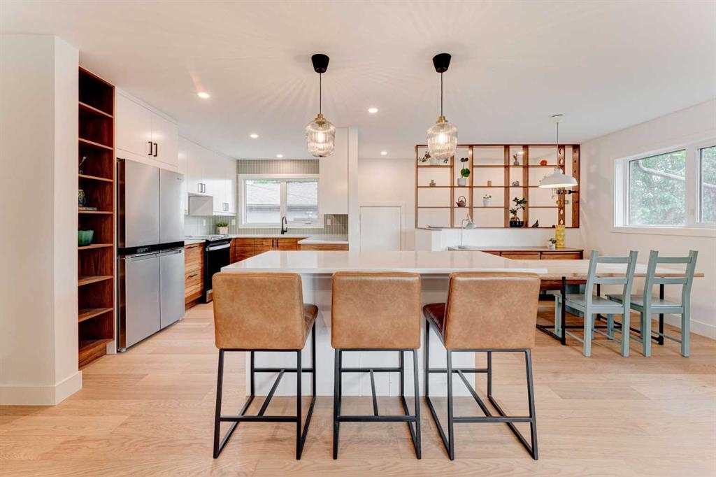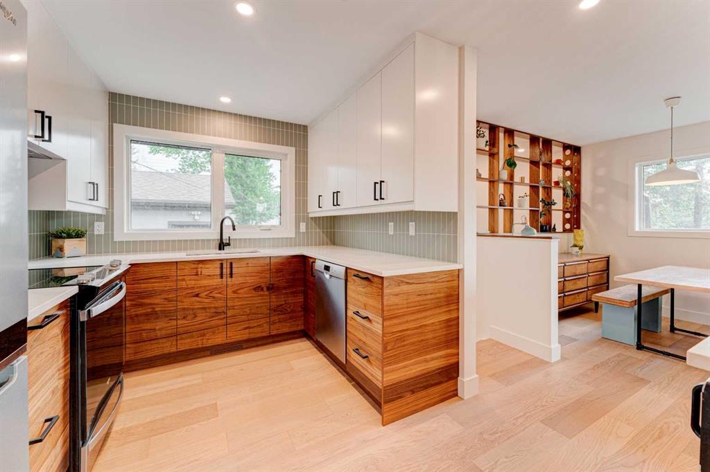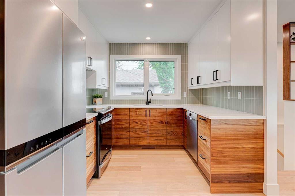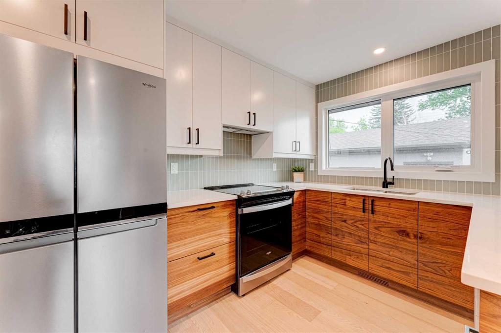 Discover your dream home in Fairview! Thoughtfully renovated with natural light throughout, this move-in-ready home offers privacy, curb appeal, and a family-friendly environment. This stunning 4-bedroom, 3-bathroom bungalow was renovated top to bottom and seamlessly blends modern upgrades with timeless charm. The open-concept layout creates the perfect space to entertain with custom woodwork throughout, a gourmet kitchen with stainless steel appliances, quartz countertops, and a spacious island which is open to the living room & fireplace and dining room. Down the hall you will find two bedrooms & two full baths. The primary bedroom provides a private retreat with walkout access to the back patio a walkthrough closet and a large ensuite bathroom with dual sinks and a spacious shower. The fully finished basement includes a family room with wet bar, perfect for entertaining as well as two additional bedrooms and 4-piece bath. Step outside to a lush, landscaped backyard with an oversized double garage, large deck and mature trees. This homes renovation has been completed with all permits pulled. Additional mentions to this renovation include: -upgraded wall insulation throughout, R60 attic insulation, fully re-vented roof, new vapor barrier throughout, new windows, new electrical & plumbing, drywall and home is rated extremely energy efficient. Located near all the community amenities, nearby shopping, and easy access to major roads and public transportation. Don’t miss this opportunity to own a beautifully updated bungalow in Fairview!