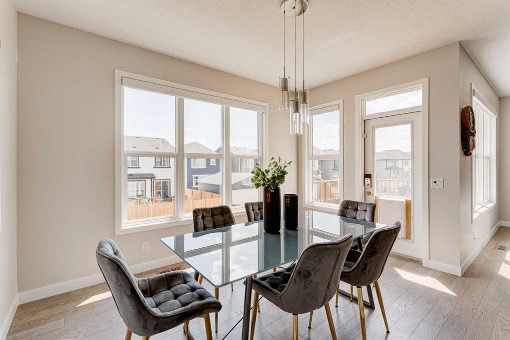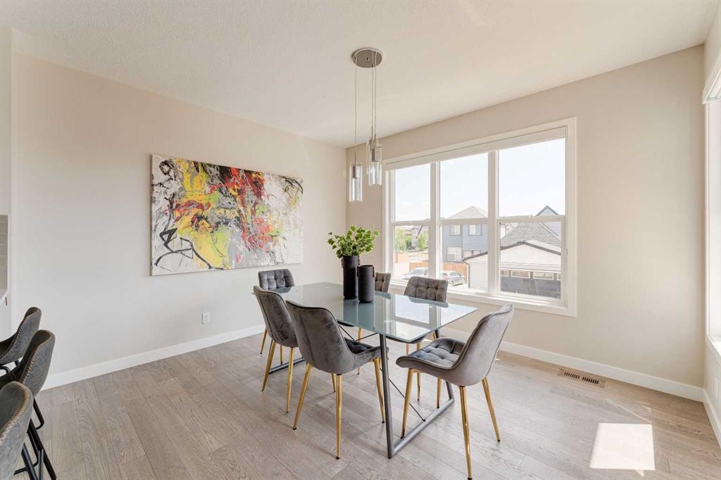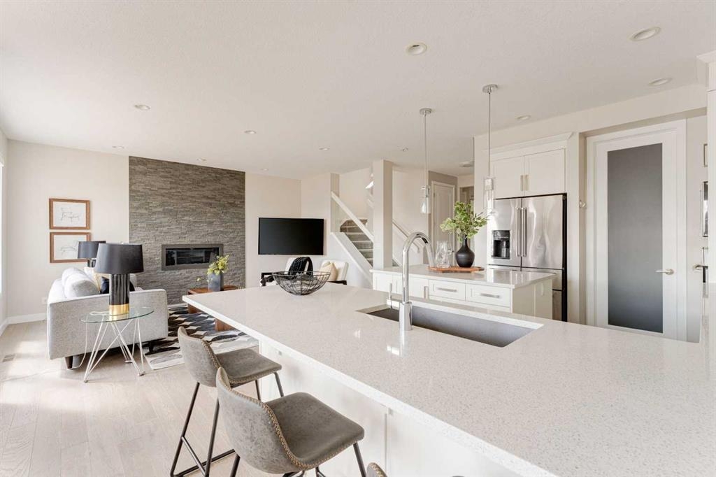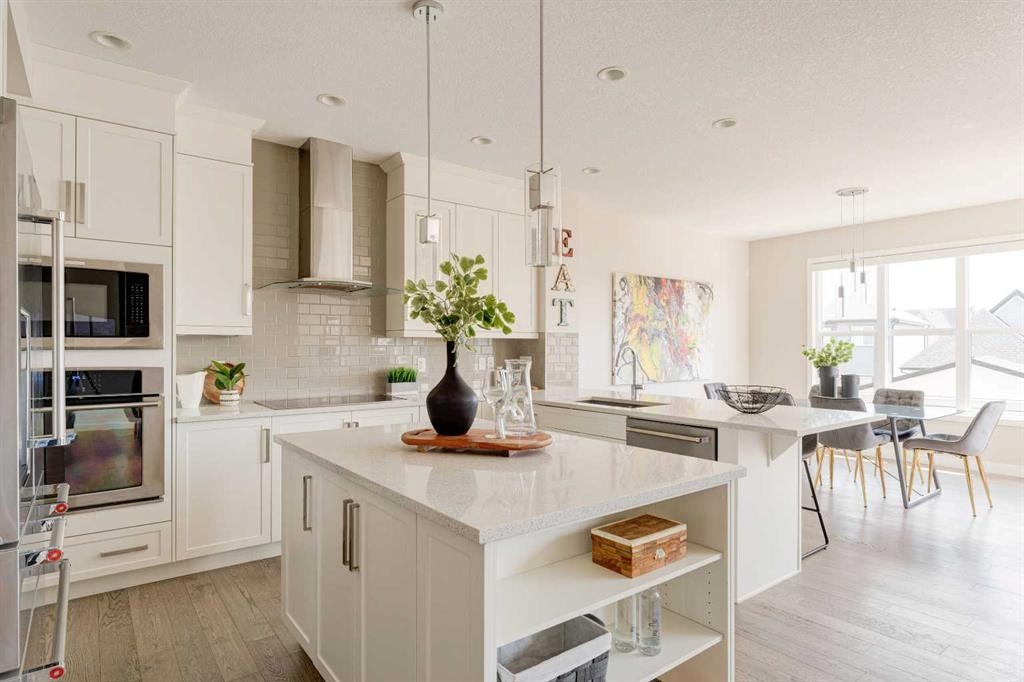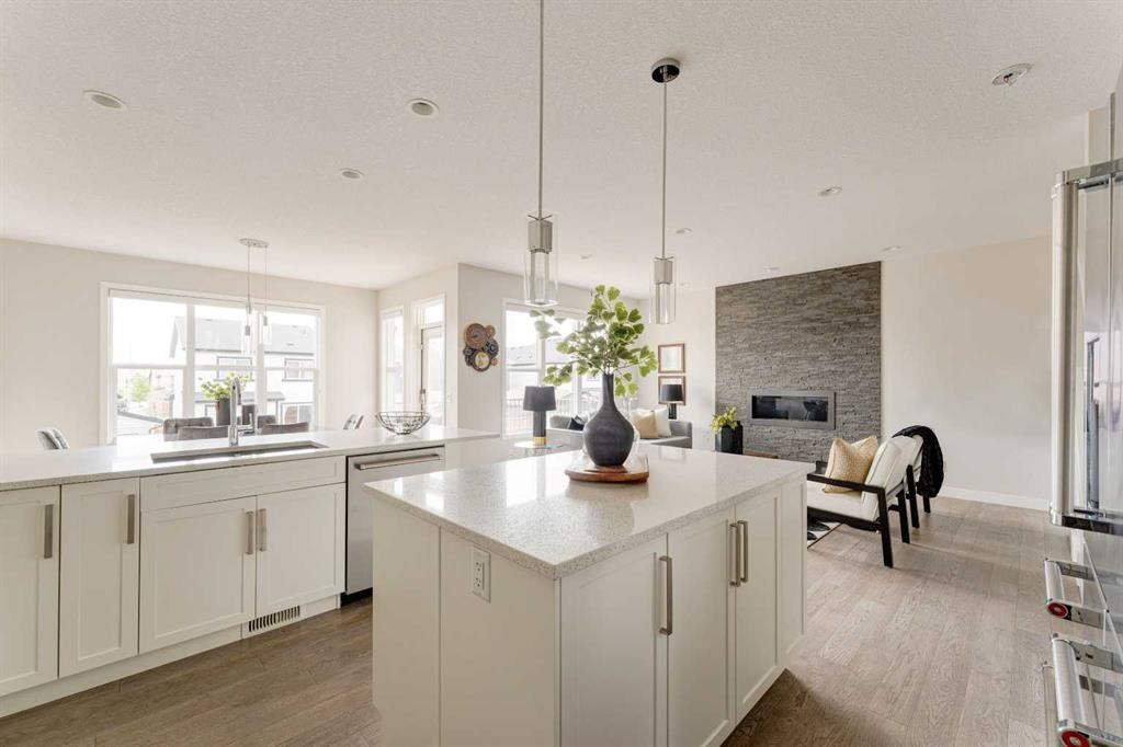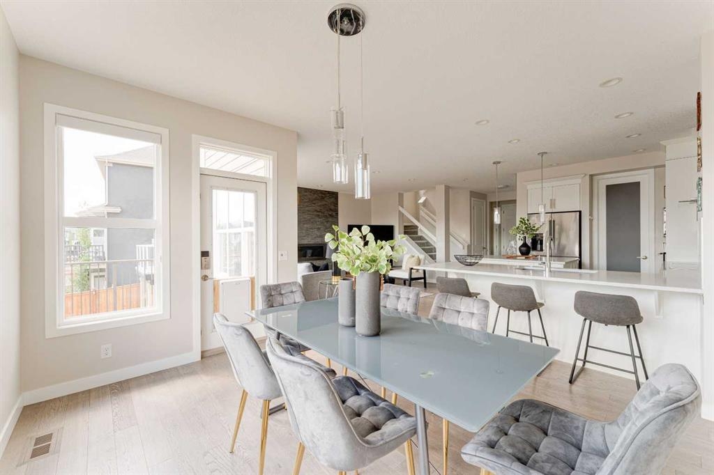 Welcome to your dream home in Mahogany, where thoughtful upgrades create an atmosphere of inviting charm from the moment you step inside. With over 2200 sqft of living space, this stylish Jayman Emerge home stands out with its bespoke upgrades, offering a unique and personalized living experience unlike any other. The gourmet open-concept kitchen is a culinary enthusiast's dream, featuring sleek white cabinetry, stunning quartz countertops, and a large island perfect for both meal prep and casual dining. Equipped with stainless steel appliances and a walk-in pantry, this kitchen truly has it all. Enjoy your morning coffee in the bright dining area, seamlessly connected to the inviting living room—an ideal space for hosting and entertaining guests. Experience Calgary’s beautiful summers from your private deck, overlooking a meticulously landscaped, fully fenced backyard—your perfect oasis for outdoor gatherings and relaxation. A convenient powder room and mudroom enhance the functionality for busy families. Step into a mechanic's paradise with a fully customized garage featuring vaulted ceilings, an infrared heater, bespoke shelving racks, an electric hoist, a magnetic drill, an air compressor, and numerous additional upgrades—perfect for both hobbyists and professionals. Upstairs, a spacious bonus room awaits, along with a convenient laundry room. The luxurious primary suite boasts a walk-in closet and a five-piece ensuite bathroom, complemented by two additional bedrooms and a four-piece family bathroom. The walkout basement is ready for your personal touch, leading to a fully turfed landscaped yard with a concrete pad and motorized trailer-style gate, offering flexible options which could be an option to park your trailer during the winter months. Additional upgrades to this home include air-conditioning, custom lighting both inside and out including gemstone lights, a blinds package, brand new carpet, landscaping, and more. This home perfectly balances modern luxury with natural serenity. Plus its in a fantastic location situated just a short walk from the main beach and club entrance, as well as serene wetlands and walking paths, it offers peaceful nature retreats right at your doorstep.