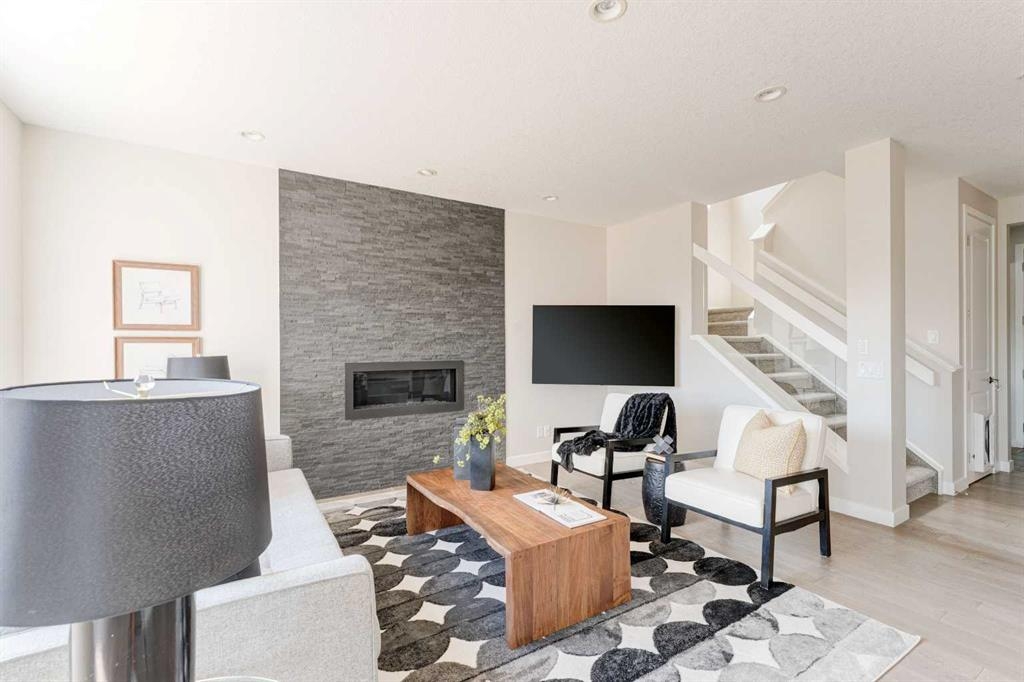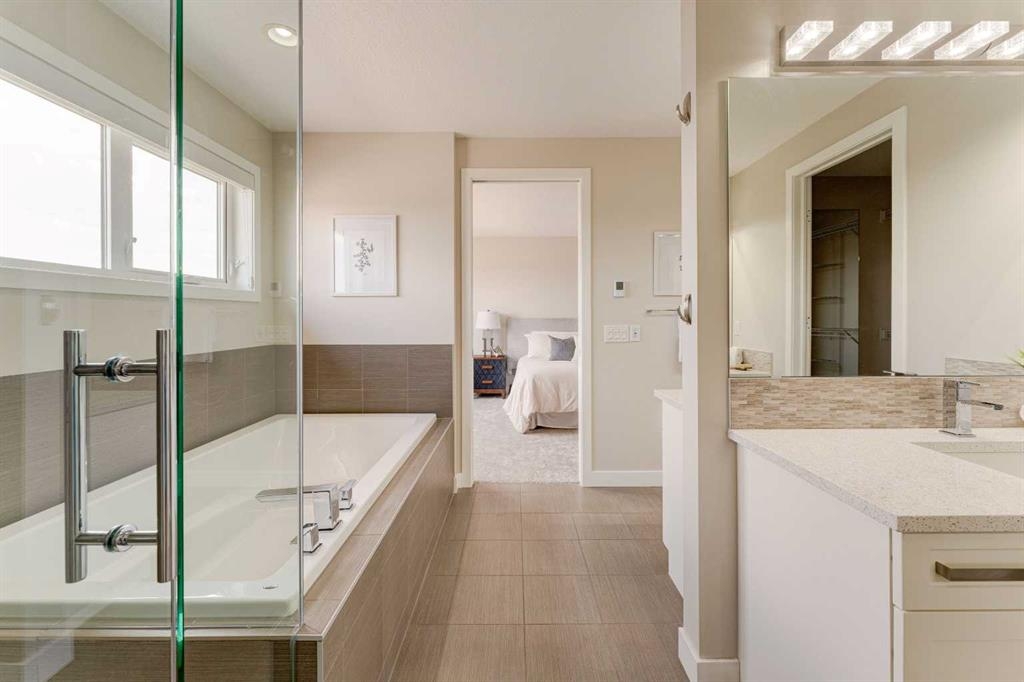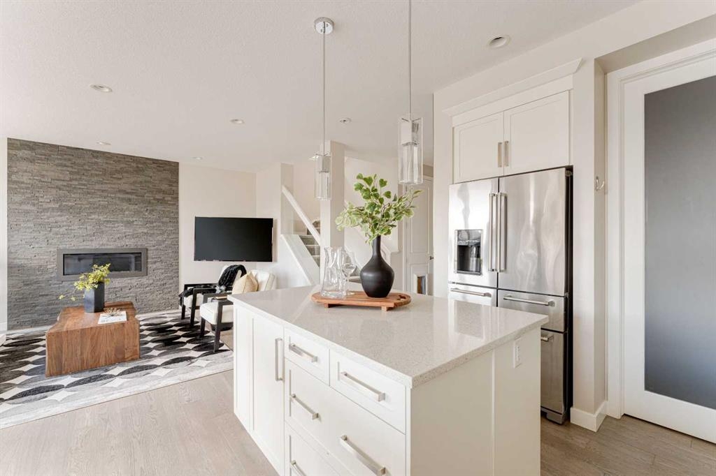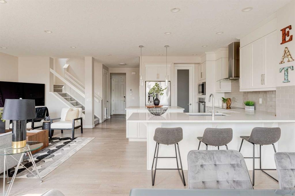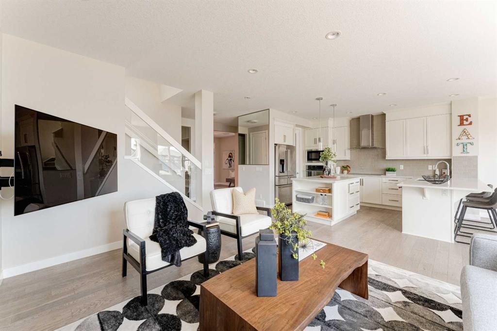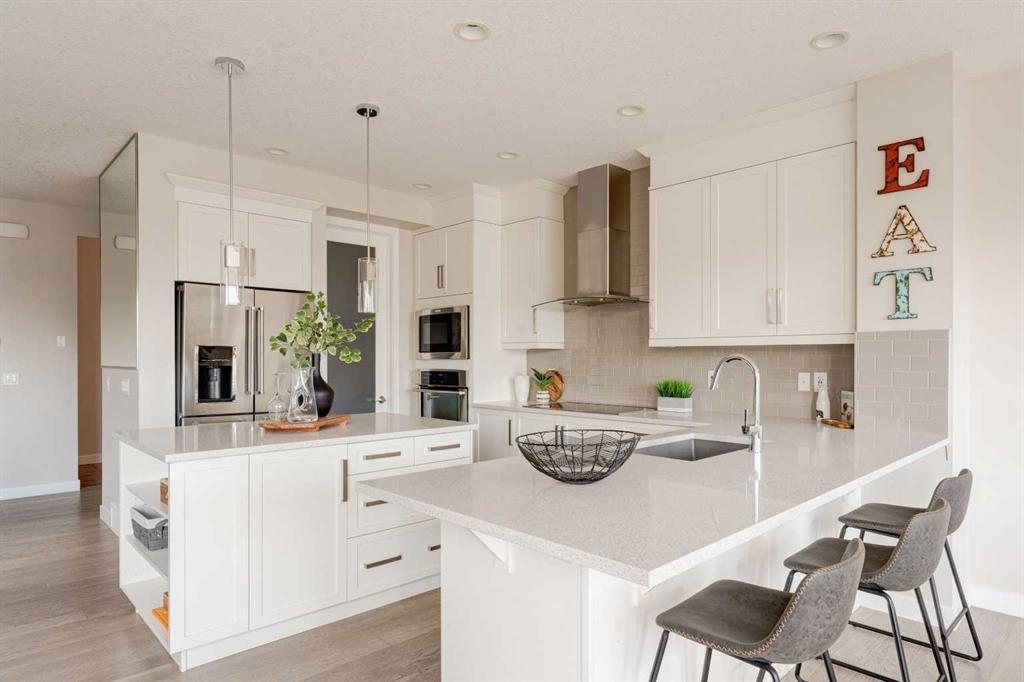 Welcome to your dream home in Mahogany, where thoughtful upgrades create an atmosphere of inviting charm from the moment you step inside. With over 2200 sqft of living space, this stylish Jayman Emerge home stands out with its bespoke upgrades, offering a unique and personalized living experience unlike any other. The gourmet open-concept kitchen is a culinary enthusiast's dream, featuring sleek white cabinetry, stunning quartz countertops, and a large island perfect for both meal prep and casual dining. Equipped with stainless steel appliances and a walk-in pantry, this kitchen truly has it all. Enjoy your morning coffee in the bright dining area, seamlessly connected to the inviting living room—an ideal space for hosting and entertaining guests. Experience Calgary’s beautiful summers from your private deck, overlooking a meticulously landscaped, fully fenced backyard—your perfect oasis for outdoor gatherings and relaxation. A convenient powder room and mudroom enhance the functionality for busy families. Step into a mechanic's paradise with a fully customized garage featuring vaulted ceilings, an infrared heater, bespoke shelving racks, an electric hoist, a magnetic drill, an air compressor, and numerous additional upgrades—perfect for both hobbyists and professionals. Upstairs, a spacious bonus room awaits, along with a convenient laundry room. The luxurious primary suite boasts a walk-in closet and a five-piece ensuite bathroom, complemented by two additional bedrooms and a four-piece family bathroom. The walkout basement is ready for your personal touch, leading to a fully turfed landscaped yard with a concrete pad and motorized trailer-style gate, offering flexible options which could be an option to park your trailer during the winter months. Additional upgrades to this home include air-conditioning, custom lighting both inside and out including gemstone lights, a blinds package, brand new carpet, landscaping, and more. This home perfectly balances modern luxury with natural serenity. Plus its in a fantastic location situated just a short walk from the main beach and club entrance, as well as serene wetlands and walking paths, it offers peaceful nature retreats right at your doorstep.