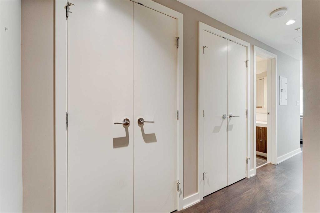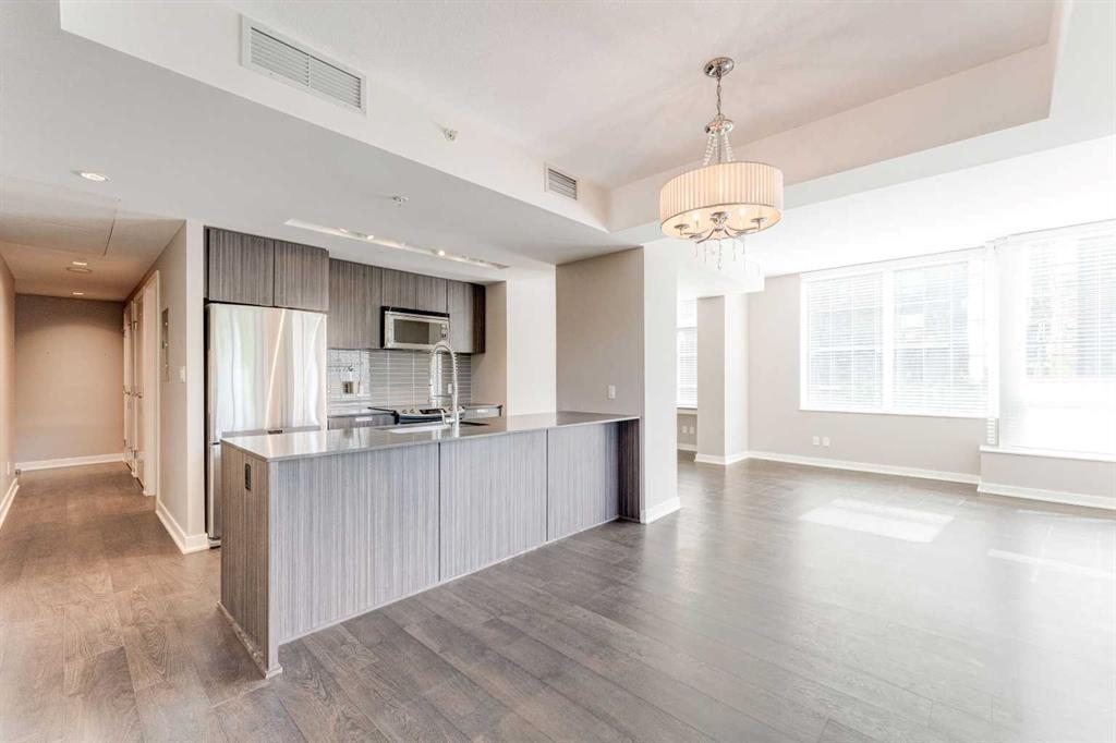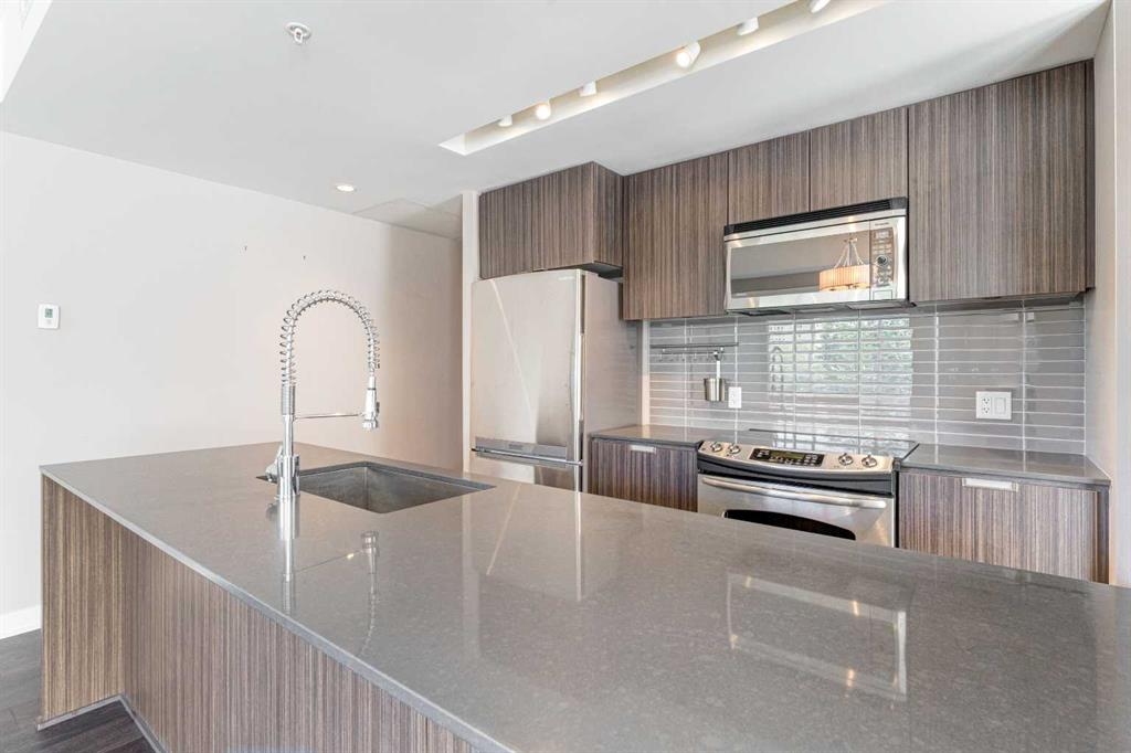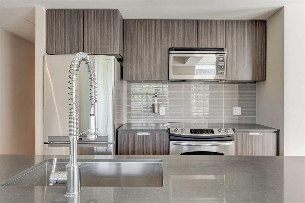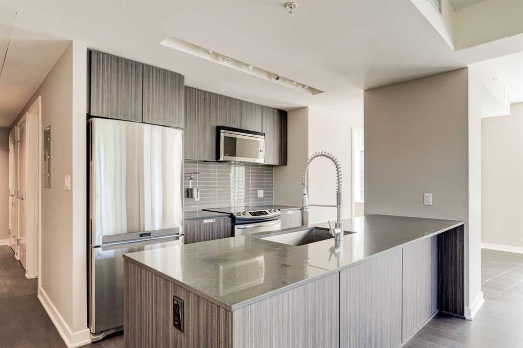 Opportunity knocks with this stunning 2-bed, 2-bath corner unit in the sought-after Calla building, offering breathtaking views of the historic Lougheed House and Beaulieu Gardens. This southwest-facing unit is drenched in natural light and just shy of 1000 sq ft, making it the perfect space for stylish, inner-city living. Designed for spacious living and entertaining, the open-concept layout includes a gourmet kitchen with quartz countertops, glass tile backsplash, a large island, and top-of-the-line stainless steel appliances. Full-height cabinets provide ample storage. The living and dining areas are surrounded by large windows which make the space feel inviting and warm, and the spacious balcony overlooks those stunning park views. The primary bedroom is a true retreat, featuring a walk-in closet and a spa-like ensuite with dual sinks, a shower, and a soaker tub. Head out into the living area to the second bedroom which overlooks the lush green space and features sliding doors with a well-appointed closet. A second 3-piece bath and in-suite laundry complete this thoughtfully designed unit. Additional perks include titled underground parking, an assigned storage locker on the same floor, and air conditioning. Calla’s exceptional amenities include a concierge, gym, yoga studio, steam room, guest suite, secured bike room, and more. Situated in a quiet yet vibrant area, just steps from parks, shopping, dining, and entertainment, this unit is a must-see!