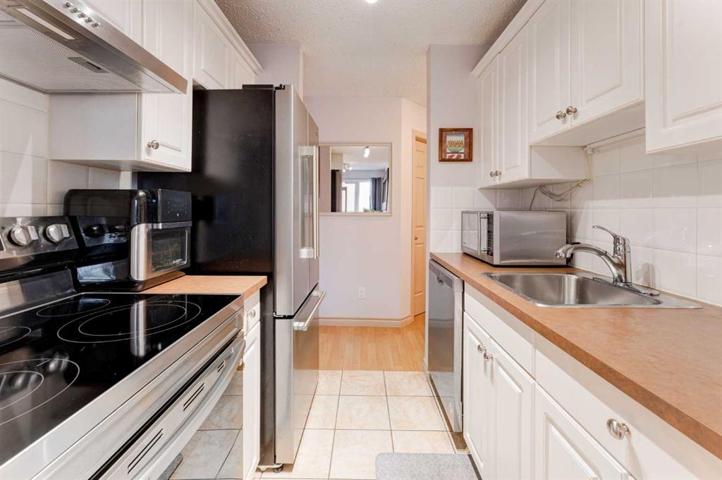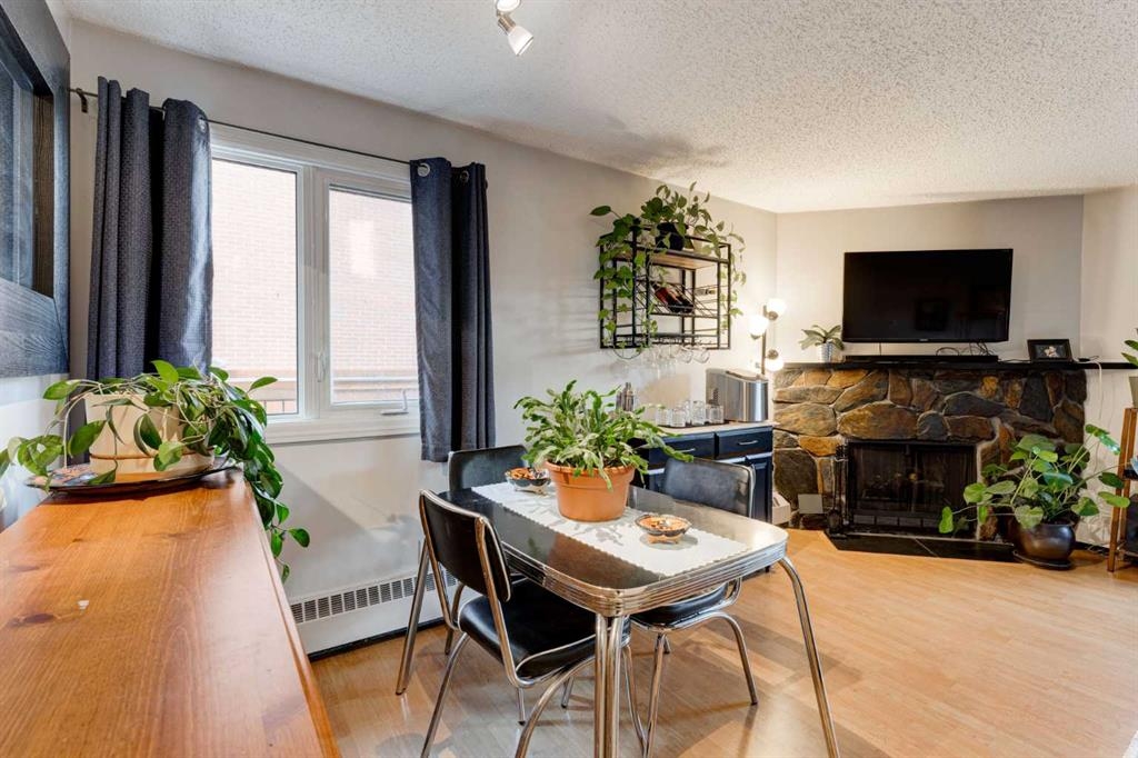 Welcome to Mi Casa! With a substantial price reduction to $249,900, here is your chance to own the best priced 2-bedroom 1 bath, pet-friendly corner unit in the highly sought-after neighborhood of Bridgeland! This home shows beautifully with 735 sq. ft. of living space, this meticulously cared-for unit stands out as one of the few in the complex with walkout access to a private green space—perfect for enjoying Calgary’s summer days and ideal for pet owners. With two spacious bedrooms (located on opposite sides of the unit), a living area complete with a wood-burning fireplace, a dining area, and a galley kitchen with newer stainless-steel appliances, this is the perfect spot for inner-city living at its best. The primary bedroom is well-appointed with a large closet, conveniently located near the 4-piece bath and in-suite laundry room. Down the hall, you'll find the second bedroom, which is perfect for guests or an office and provides additional storage. Enjoy cozying up in winter in the spacious living room, with sliding doors leading to your own private patio—ideal for enjoying both day and night. This unit also features one heated underground parking spot and ample storage, not only within the unit but also in a storage locker in the parkade. The building is **dog-friendly** (with board approval required) and has an amazing communal patio space at the rear, offering great views of downtown. Condo fees include everything except electricity. You really can’t beat this location, which is close to trendy restaurants, transit, shopping, the pathway system, greenspace, and only three minutes from downtown. The proactive condo board has made several improvements over the past few years, including new shingles, Hardie board siding, newer windows, a newer boiler (5 years), a new parkade door and motor, refreshed hallways, and more. This means the building is a great investment for years to come, with many capital expenses already taken care of! At this price point, you have the opportunity to create a space that's your own personal style. Why rent when you can own? This home offers unbeatable value and the perfect opportunity to invest in your future inner-city life. Don’t wait—this gem won't last long!