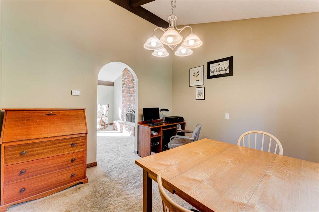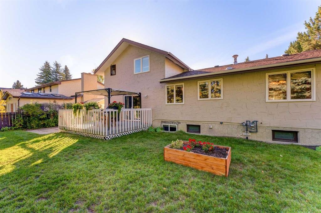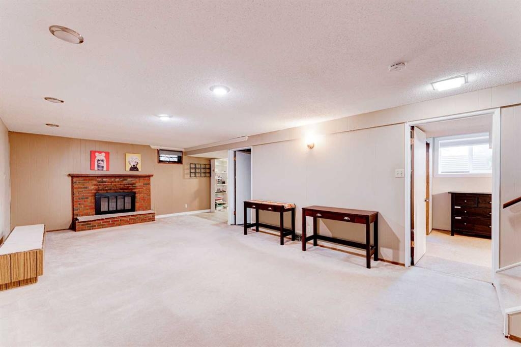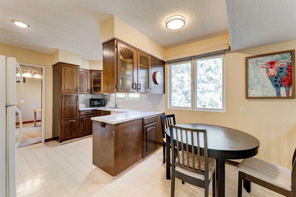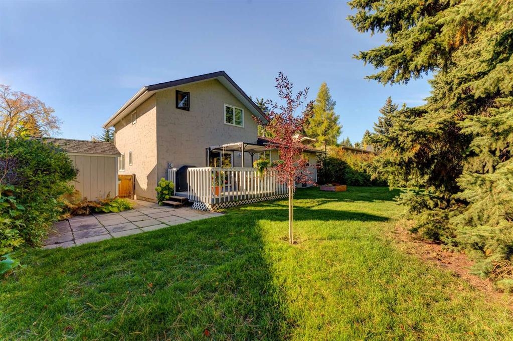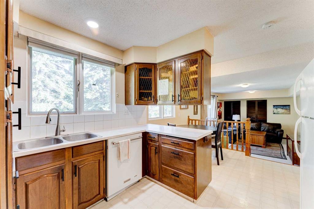 Welcome to this unique opportunity to own a spacious home in Calgary’s highly sought-after neighborhood of Varsity! With over 3,000 sq ft of developed space, this 70 x 120 lot property is tucked away on a quiet cul-de-sac, surrounded by mature spruce trees that provide exceptional privacy. This home is ready for your personal touch, offering endless renovation possibilities to create your dream space. As you step inside, you’ll find a welcoming layout with vaulted, beamed ceilings in the front living area, complemented by a cozy wood-burning brick fireplace, perfect for relaxing and entertaining. An arched doorway leads you into a versatile den or flex area that could serve as a home office, pantry, or formal dining room. The kitchen, which offers a lovely view of the private, tree-lined yard, has plenty of space for a breakfast nook and connects seamlessly to the family room. Step outside into your own private oasis with a spacious backyard, where you'll find a new shed for all your outdoor essentials. Back inside, the main floor is complete with a 3-piece bath and a main floor bedroom, offering convenience and flexibility. Head upstairs to find three bedrooms, including a primary suite with its own 2-piece bath. The two additional bedrooms share a 4-piece bathroom. The finished basement features a large recreational room, a fifth bedroom with a 3-piece ensuite, and an oversized storage room with built-in shelving. An attached double garage rounds out this home’s impressive features. Its prime location is close to the University of Calgary, Alberta Children’s Hospital, Market Mall, and the Brentwood LRT station. Varsity is a prestigious executive community that offers top-rated schools, including Christine Meikle School, F.E. Osborne School, Marion Carson School, St. Vincent de Paul School, and Varsity Acres School. With just an 15-20 minute drive to the airport and a 10-15 minute commute to downtown, this location is perfect for those seeking both tranquility and convenience. Enjoy having all the essentials within reach—from shopping at Market Mall to outdoor adventures along the Bow River. Don’t miss this chance to own in one of Calgary’s most desirable neighborhoods!