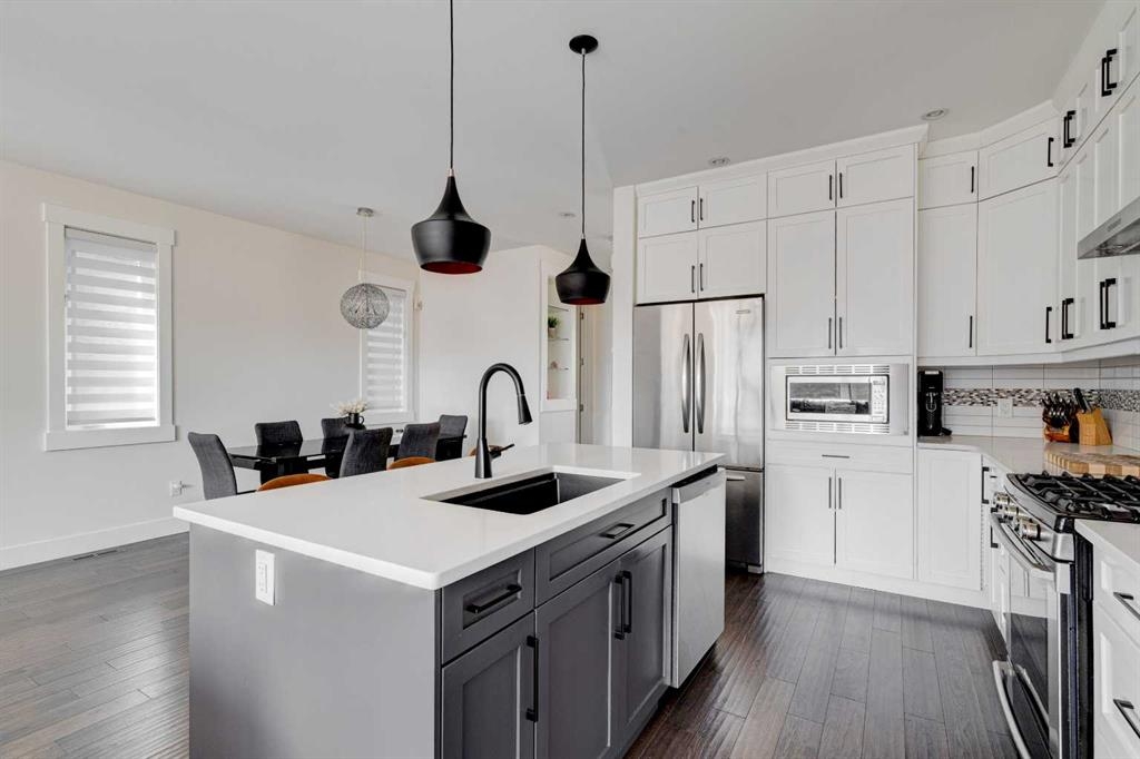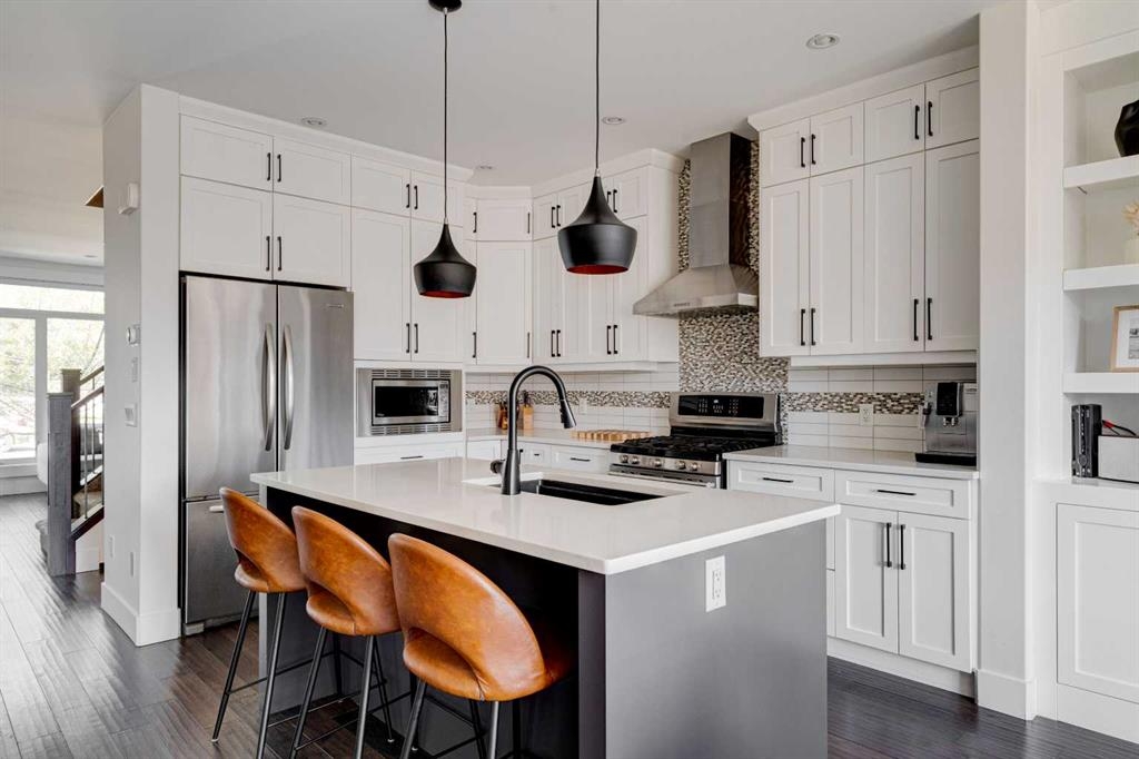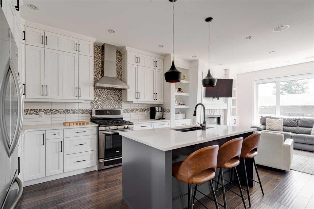 Welcome to Capitol Hill! This beautifully appointed infill sits on a quiet street in one of the neighbourhood's best locations. With a coveted south-facing backyard and just minutes to downtown, this is one you won’t want to miss. Step inside and you’ll immediately notice the thoughtful upgrades and charming features that set this home apart from brand-new builds. The floorplan is smartly designed, starting with a front sitting room that makes an ideal TV room, playroom, or home office. At the rear of the home, the kitchen is a true standout with full-height cabinetry, a gas range, stainless steel appliances, and an island perfect for meal prep and casual dining. The adjacent dining area provides a welcoming space for family meals. The kitchen flows into a bright and spacious family room—perfect for entertaining or relaxing by the fireplace while enjoying views of the sunny south-facing backyard. Tucked away near the back door, you'll find a convenient mudroom with built-in shelving and storage, leading to the backyard and double garage. Upstairs, you'll find three bedrooms, including a spacious primary suite with a large walk-in closet and a luxurious 5-piece ensuite featuring a soaker tub, steam shower and heated floors. The upper level also includes a thoughtfully designed laundry area with a sink, plenty of storage, and counter space. The lower level offers even more living space with a large rec room, perfect for kids, entertaining, or movie nights. A full wet bar with an island and ample storage adds to the appeal. The fourth bedroom, currently used as a gym, includes a built-in Murphy bed for guests. A 4-piece bath completes this level, providing convenience for visitors. Step outside to enjoy your own private summer retreat. The sunny south-facing backyard features a motorized awning, a concrete patio area, and a lawn for outdoor activities. Additional upgrades include air conditioning, built in speaker system, Kinetico water softener, in floor heating throughout basement, custom window coverings, the built-in Murphy bed, and more. This is a rare opportunity to live in a highly sought-after neighbourhood, surrounded by mature trees, wonderful neighbours and with easy access to inner-city amenities, transit, schools, and more.
