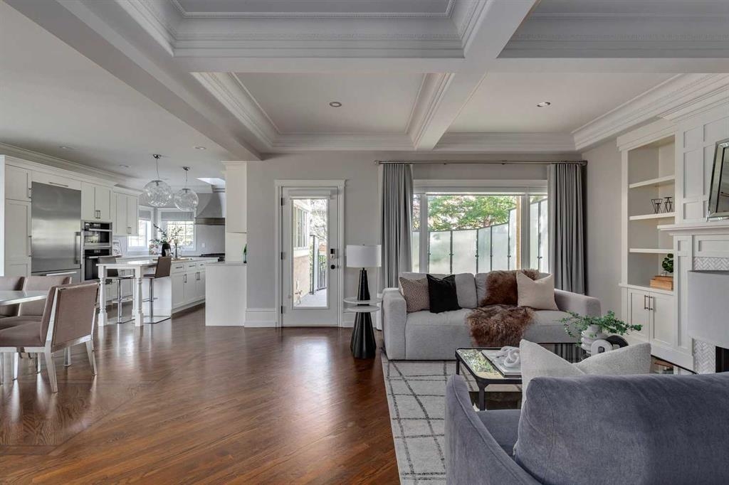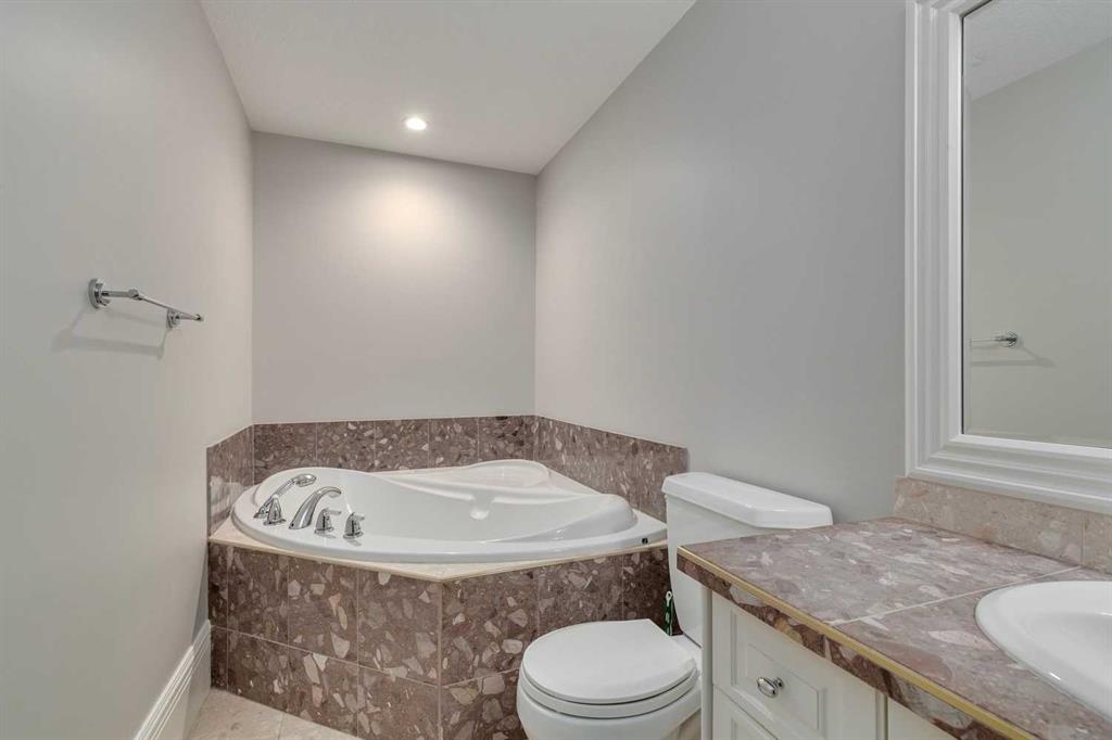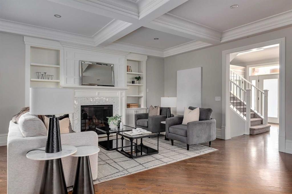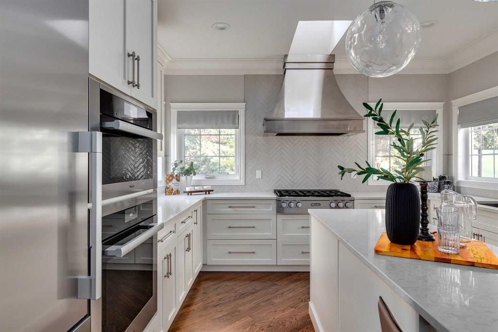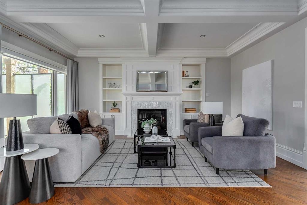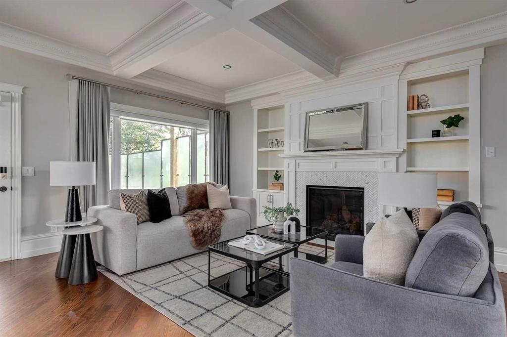 Welcome to this beautifully renovated home in the highly desirable community of Signal Hill. Tucked away on a private lot surrounded by mature trees, with over 3200 total sqft, this 4-bedroom, 3.5-bath residence offers a perfect blend of thoughtful design, functional spaces, and premium upgrades for modern family living. Step into the spacious foyer and instantly feel the inviting flow of the home. The main living area is open and bright, featuring a cozy family room with fireplace, seamlessly connected to the dining space and chef’s kitchen. Designed for both everyday living and entertaining, the kitchen showcases custom cabinetry, quartz countertops, high-end Miele appliances, and a large island that doubles as a breakfast bar and prep space. An additional bonus on this floor is a versatile second family room which is ideal for movie nights, a kids’ playroom, or a spacious home office. A stylish powder room completes the main level. Upstairs, the peaceful primary suite offers views of the treetops and features a spa-inspired ensuite with double sinks, heated floors, shower, and a large walk-in closet. Two additional bedrooms, a well-appointed full bathroom, and a convenient laundry room complete the upper level. The fully developed lower level offers exceptional flexibility, with a large recreation room featuring a second fireplace, a 5-piece bath, glass-enclosed office or den, a flexible gym/guest bedroom, and an additional room that could serve as a fifth bedroom. Whether you need space for work, fitness, or guests, this level adapts to your needs. Enjoy outdoor living on the private patio, complete with privacy glass, lush greenery, and gas hookups for a BBQ and fire table, perfect for entertaining or relaxing in a tranquil setting. The oversized double garage easily accommodates larger vehicles, including trucks and SUVs. This home is packed with upgrades, included a vaulted entryway, coffered ceilings, upgraded lighting, fresh paint, 9-foot ceilings, elegant 10-inch baseboards, Central Air conditioning, and premium finishes throughout. Located close to top-rated schools, shopping, groceries, and major commuter routes, this is the ideal home for a growing family seeking style, comfort, and convenience.