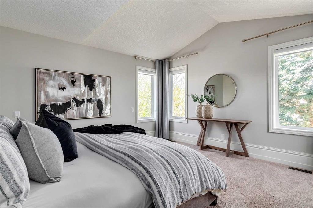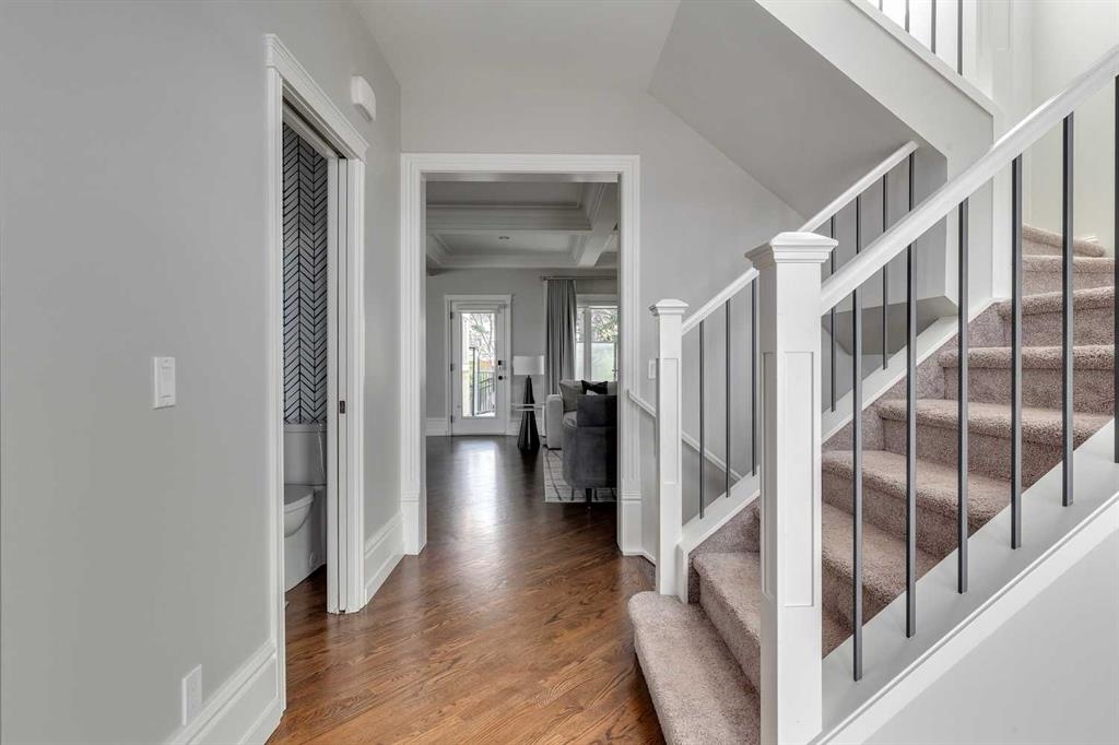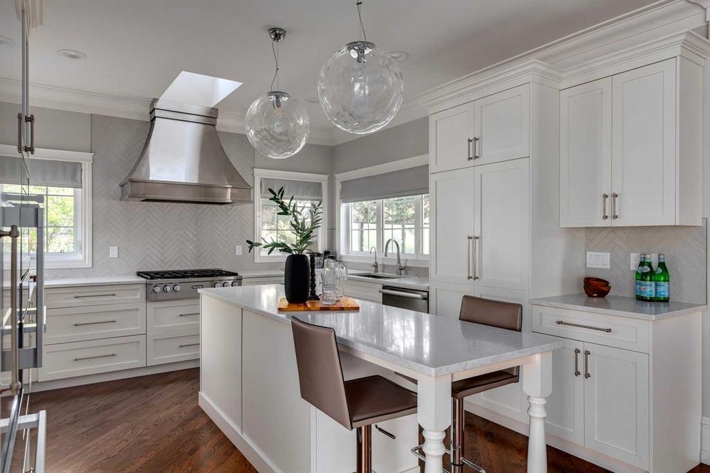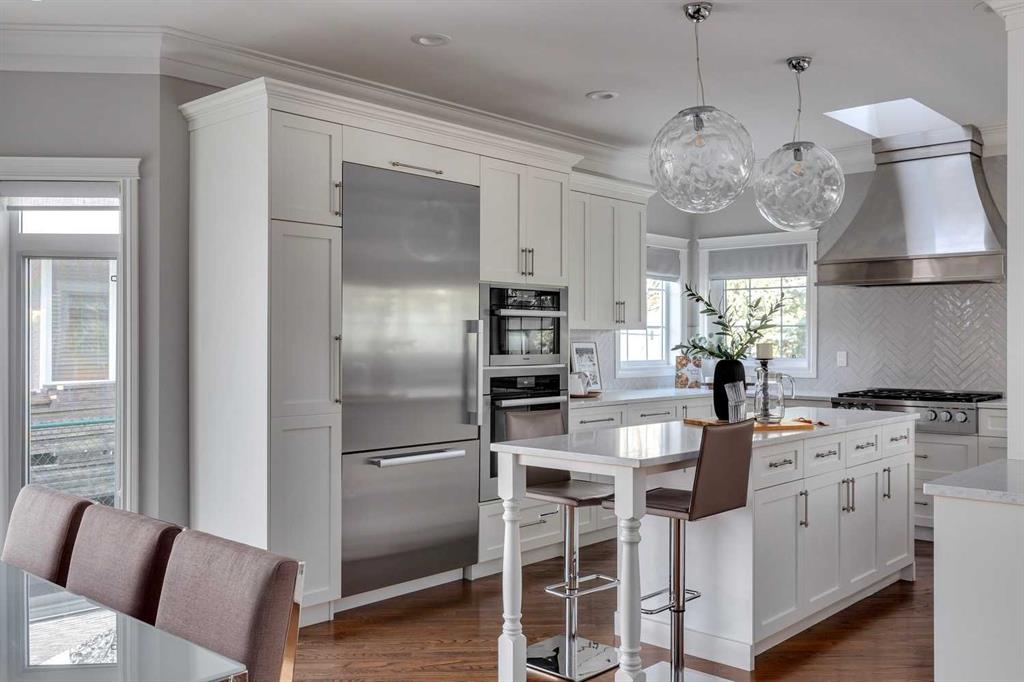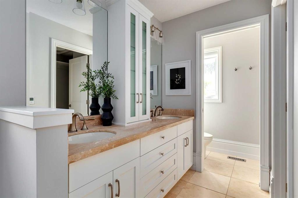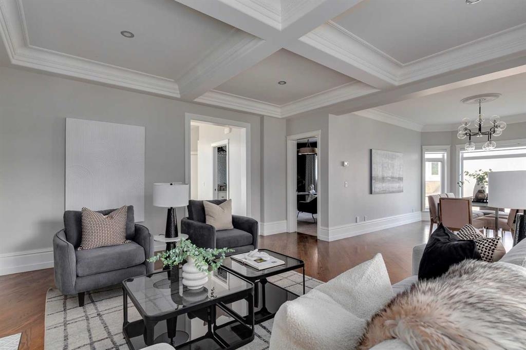 Welcome to this beautifully renovated home in the highly desirable community of Signal Hill. Tucked away on a private lot surrounded by mature trees, with over 3200 total sqft, this 4-bedroom, 3.5-bath residence offers a perfect blend of thoughtful design, functional spaces, and premium upgrades for modern family living. Step into the spacious foyer and instantly feel the inviting flow of the home. The main living area is open and bright, featuring a cozy family room with fireplace, seamlessly connected to the dining space and chef’s kitchen. Designed for both everyday living and entertaining, the kitchen showcases custom cabinetry, quartz countertops, high-end Miele appliances, and a large island that doubles as a breakfast bar and prep space. An additional bonus on this floor is a versatile second family room which is ideal for movie nights, a kids’ playroom, or a spacious home office. A stylish powder room completes the main level. Upstairs, the peaceful primary suite offers views of the treetops and features a spa-inspired ensuite with double sinks, heated floors, shower, and a large walk-in closet. Two additional bedrooms, a well-appointed full bathroom, and a convenient laundry room complete the upper level. The fully developed lower level offers exceptional flexibility, with a large recreation room featuring a second fireplace, a 5-piece bath, glass-enclosed office or den, a flexible gym/guest bedroom, and an additional room that could serve as a fifth bedroom. Whether you need space for work, fitness, or guests, this level adapts to your needs. Enjoy outdoor living on the private patio, complete with privacy glass, lush greenery, and gas hookups for a BBQ and fire table, perfect for entertaining or relaxing in a tranquil setting. The oversized double garage easily accommodates larger vehicles, including trucks and SUVs. This home is packed with upgrades, included a vaulted entryway, coffered ceilings, upgraded lighting, fresh paint, 9-foot ceilings, elegant 10-inch baseboards, Central Air conditioning, and premium finishes throughout. Located close to top-rated schools, shopping, groceries, and major commuter routes, this is the ideal home for a growing family seeking style, comfort, and convenience.