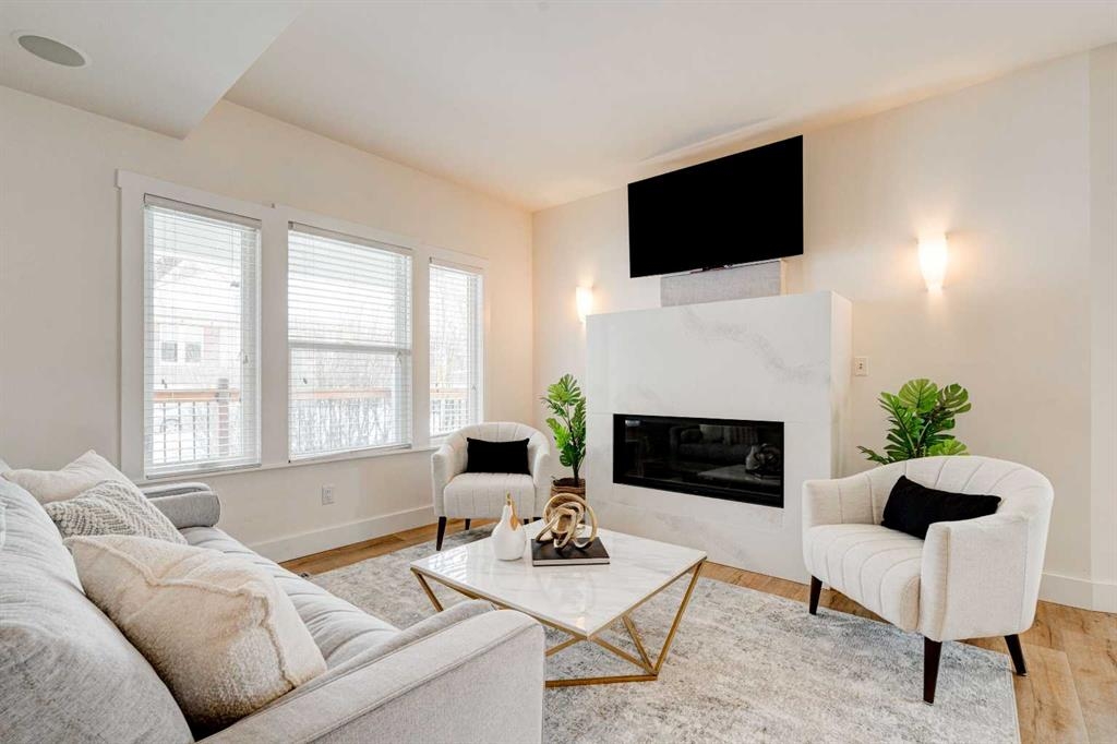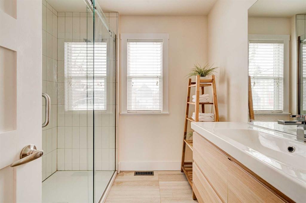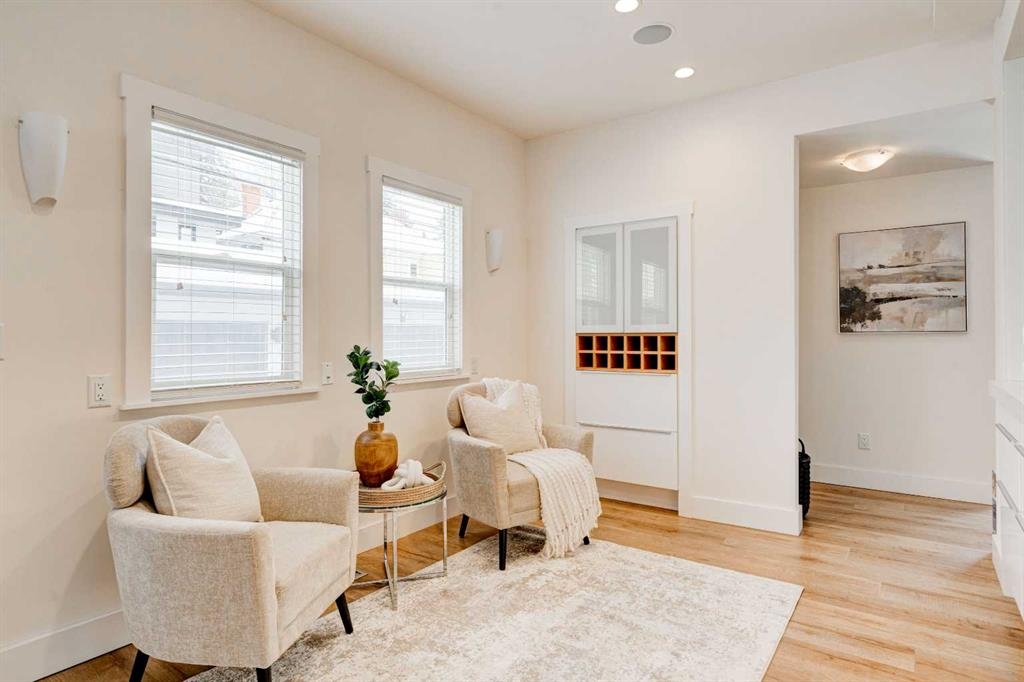 Set on one of Cliff Bungalow’s special and most charming streets, shared with just seven other homes, this turnkey, renovated character home is as special as its setting. With undeniable curb appeal, it sits on a 25 x 140 ft lot directly across from a park and just steps from the Montessori school. It is the kind of location people wait for. Arrive home and spend warm afternoons on the front veranda, soaking in peaceful park views, or step inside to unwind. The interior strikes a perfect balance between timeless character and clean, modern updates. The main floor offers a bright, open-concept layout that flows effortlessly between the living, dining, and kitchen spaces. It feels social, functional, and full of warmth. The kitchen is crisp and understated, featuring white cabinetry, quartz countertops, stainless steel appliances (new Miele dishwasher, new hood fan, serviced Viking stove), and a generous island that naturally becomes the heart of the home. A convenient powder room completes the main level. The living area is anchored by a sleek fireplace and framed by large windows that fill the space with natural light throughout the day. Designed with entertaining in mind, the layout leads seamlessly to the new back patio, overlooking the yard and double garage. It is perfect for summer evenings and weekend gatherings. Upstairs, the primary retreat feels like a hidden gem. Vaulted ceilings, exposed beams, and hardwood floors create a cozy yet elevated atmosphere. A spacious walk-in closet and a beautifully renovated ensuite, with a clawfoot tub and glass shower, add to the sense of calm. A private upper patio overlooks the west-facing yard. The second bedroom is bright and spacious, overlooking the front yard, with an additional 3-piece bathroom just down the hall. The fully developed lower level adds even more versatility, offering an additional bedroom, currently used as an office, a flexible rec room, storage space with potential for a second kitchen, plus laundry and another 3-piece bath. With zoning already in place, there is also the option to develop a secondary suite in the future. Behind the scenes, the important updates have all been taken care of, including a new top of the line smart furnace, hot water tank, built-in speakers, improved insulation, updated siding, new gutters, new garage door, landscaping, new faucets, millwork, plumbing pressure system, new front steps, ongoing exterior maintenance and more!. This is one of those homes that simply feels right the moment you walk in. It is full of character, thoughtfully updated, and perfectly located just steps from Mission, 17th Avenue, river pathways, and downtown.