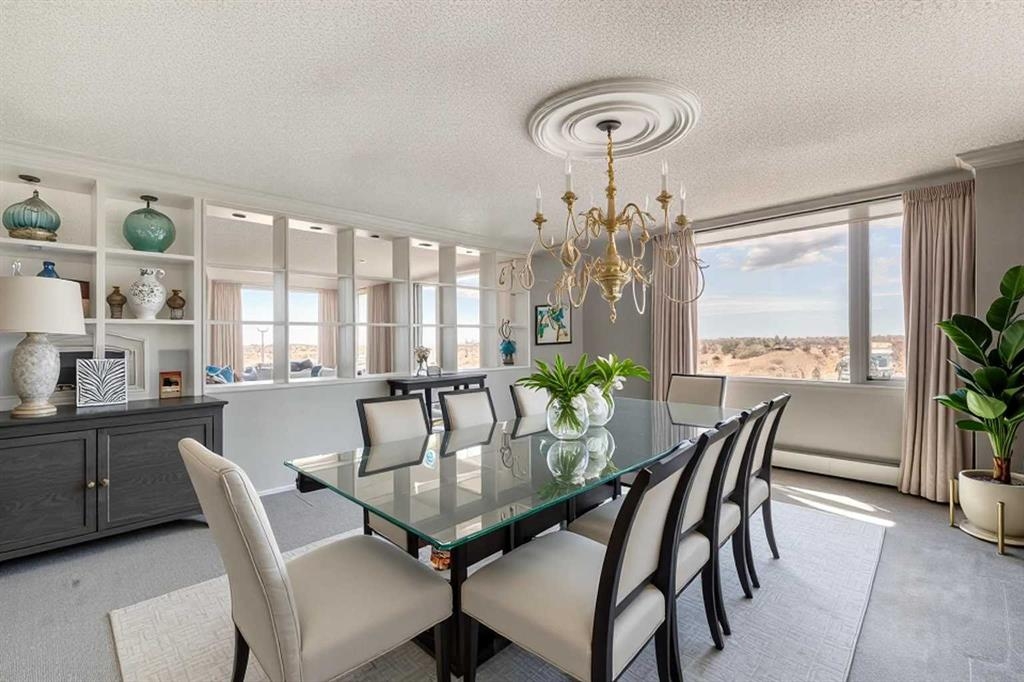 Welcome to 500 Eau Claire Estates. Opportunities like this one are genuinely rare. Occupying the entire 20th floor of the coveted "A" Tower, this remarkable 3 bedroom, 2.5 bath residence offers 3,554 square feet of single-floor living with unobstructed 360-degree views of the Bow River, the Rocky Mountains, and the Calgary skyline. It is the kind of home that stops you in your tracks the moment you walk in. A private elevator opens directly into your own dedicated foyer with no shared hallways and no neighbours at your door. Just a gracious, unhurried entrance with ample storage and an immediate sense that this is somewhere special. As you wander down the hall it opens to the main living room, anchored by a wood-burning fireplace and the stunning Bow River views that provide a gorgeous backdrop throughout the seasons whether you're entertaining or simply unwinding at the end of the day. The formal dining room flows naturally off the living space, while the kitchen connects to a sunny south-facing patio overlooking the downtown skyline, a casual dining area, and a flexible den or sitting room that adapts easily to how you actually live. The primary suite is expansive and feels like its own world, also overlooking the river and west, a second wood-burning fireplace, generous walk-in closet, a flex den area, and a well-appointed 5-piece ensuite. The two additional bedrooms are both genuinely spacious, one with west-facing mountain views and a walk-in closet, the other looking south-west over downtown. Eau Claire Estates has undergone a significant stunning renovation to its common areas, including a refreshed concierge and main entrance, new elevators, and an updated pool and fitness centre as well as residents lounge opening June 2026. This home also comes complete with two titled parking stalls, private storage and all utilities included in the fees. With a wonderful 24-hour concierge service, on-site management, landscaped courtyards and a beautiful location, homes like this are not simply found, they are waited for. With a floorplan that has long been among the most coveted in the building, dual wood-burning fireplaces, panoramic views from every room, and a building experiencing a true renaissance, this is an opportunity to claim one of Calgary's most exceptional addresses, steps from the Bow River pathways, the downtown core, and the brand new Eau Claire Athletic Club. Welcome Home.