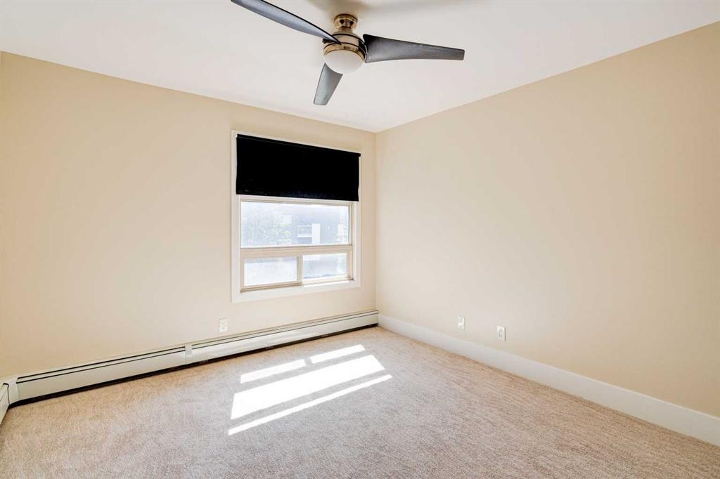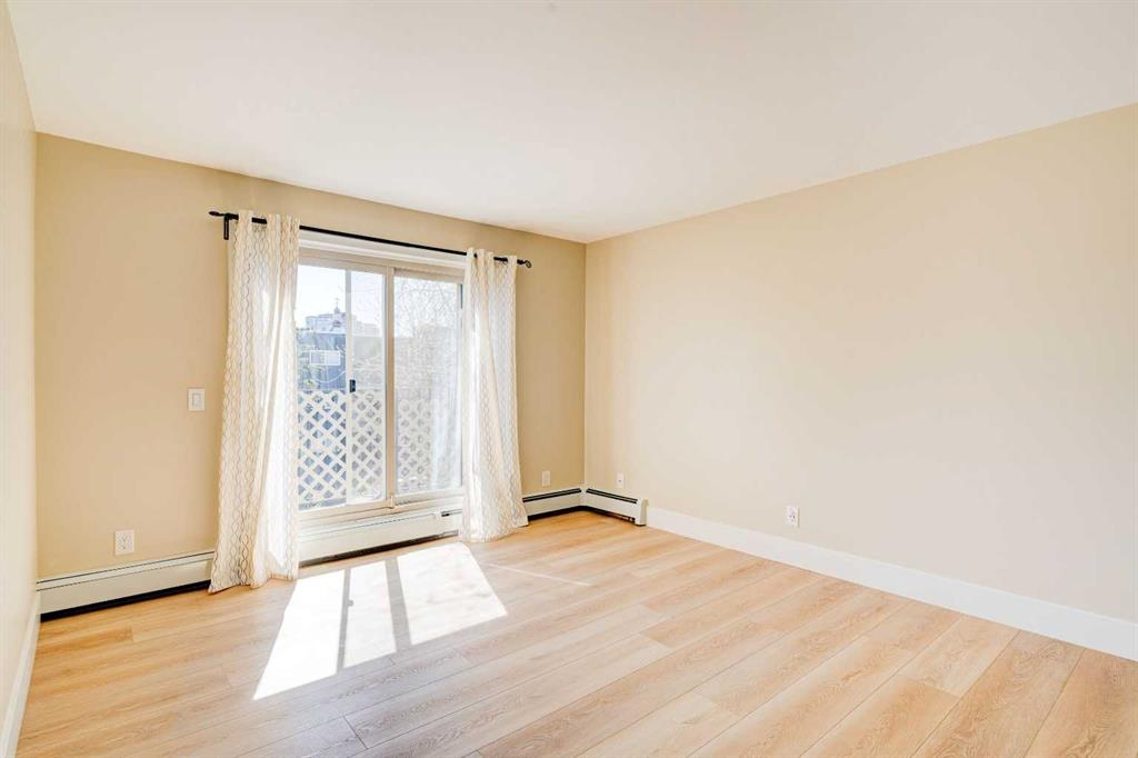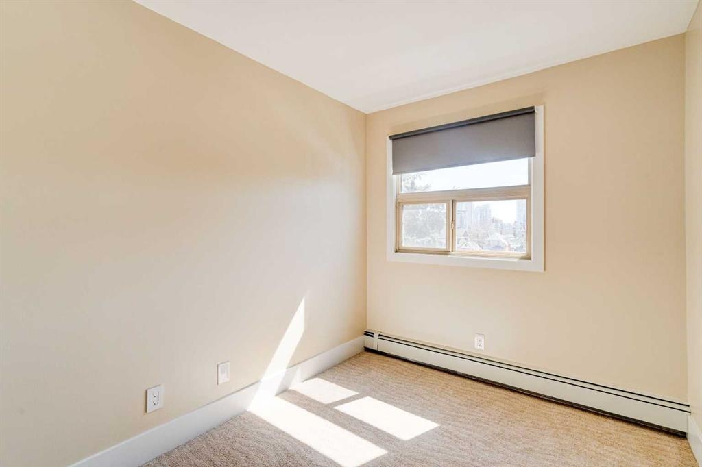 Welcome to Crescent Heights living with downtown views at the Rialto. This chic 2-bedroom condo on the third floor delivers a clean, modern aesthetic with nothing left to do but move in. Thoughtfully updated throughout, it features brand new laminate flooring & carpet, fresh paint, California closets, and a freshly renovated bathroom that feels current and elevated. The open-concept layout is efficient and well designed. A sleek kitchen with stainless steel appliances, generous cabinetry, and a functional island anchors the space, flowing effortlessly into a bright living area framed by natural light. Step out and take in city views that remind you exactly why inner-city living hits different. Two versatile bedrooms offer flexibility for a home office/guest space, and in-suite laundry adds everyday ease to the space. The Rialto was updated substantially in 2007 and provides owners with secure bike storage as well as this unit includes a covered parking stall. All of this in Crescent Heights which means its walkable, connected and minutes to downtown, transit, parks, and local favourites. Turnkey. Stylish. Exactly where you want to be to enjoy inner city life to its fullest.